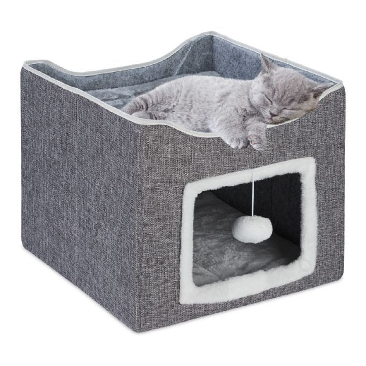 1x Árbol para gatos, 2x Plataformas grandes, 2x Plataformas pequeñas, 1x Escondite, 1x Percha acolchada, 1x Base resistente, 1x Conjunto de postes rascadores, 1x Juguetes colgantes con cascabel
