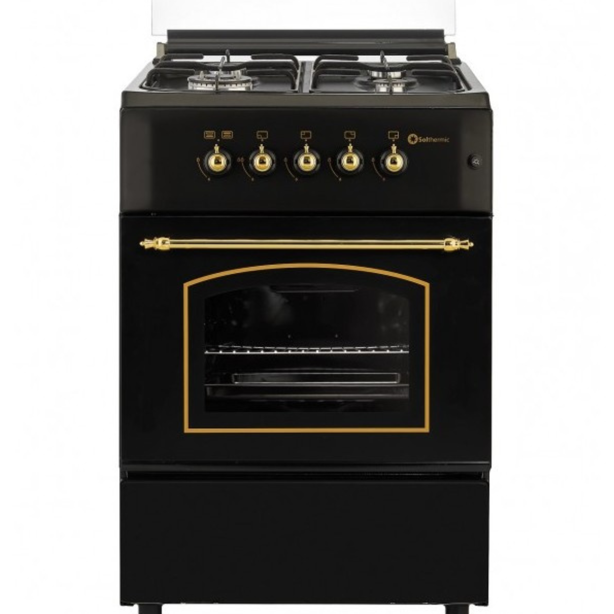 Cocina Gas - F6S40E5RB Estilo retro, 4 Fuegos + Horno eléctrico SOLTHERMIC SOLTHERMIC, 60 l, Esmalte fácil de limpiar, 60 cm, Negro