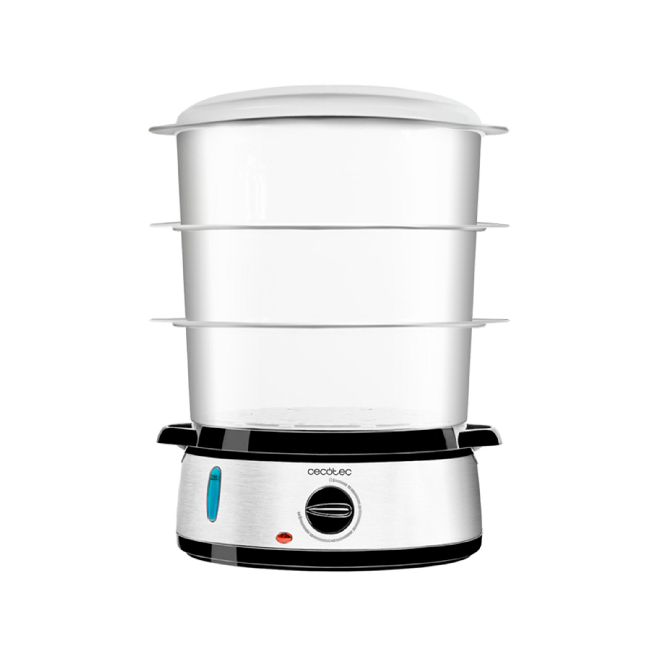 Cocedor al vapor Orbegozo CO 4015 en color blanco con 800W de potencia, tres recipientes apilables de 9 litros de capacidad, temporizador de 60 minutos, parada automática con señal acústica, indicador luminoso, visor del nivel del agua (1 litro de capacidad), recipiente con soportes para cocer huevos y recipiente especial para cocer arroz, ambos recipientes se pueden lavar en el lavavajillas ¿Qué destacamos? Cocedor al vapor 800W de potencia 3 recipientes apilables de 9L Temporizador de 60 minutos Parada automática con señal acústica Libre de BPA (Bisfenol A). Ideal para la cocción de carne, pescado, verdura, arroz, patatas y huevos. Conserva todas las propiedades y vitaminas de los alimentos. 230V-50Hz.