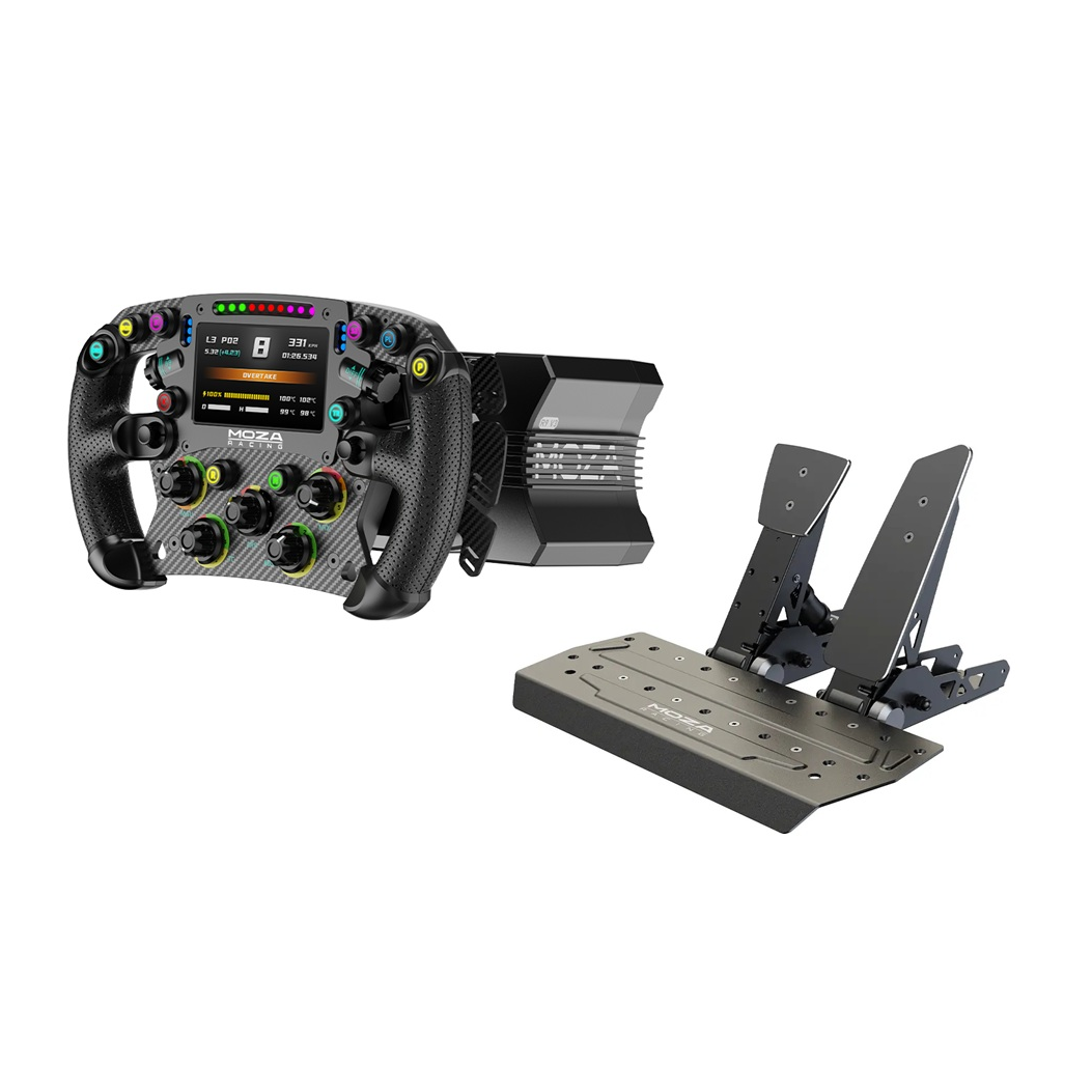 1× Base Direct Drive Moza Racing R9 V3, 1× Volante Formula FSR2, 1× Pedalera SR-P, 1× Cable USB, 1× Kit de montaje, 1× Guía de inicio rápido