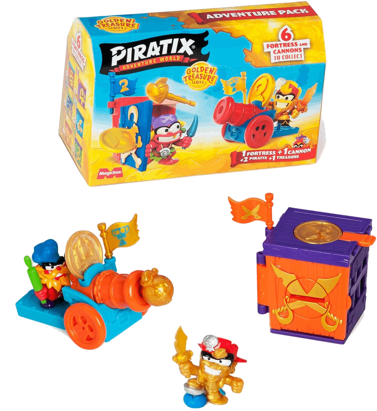 1 x cofre, 3 x Piratix, 1 x tesoro (modelos aleatorios)