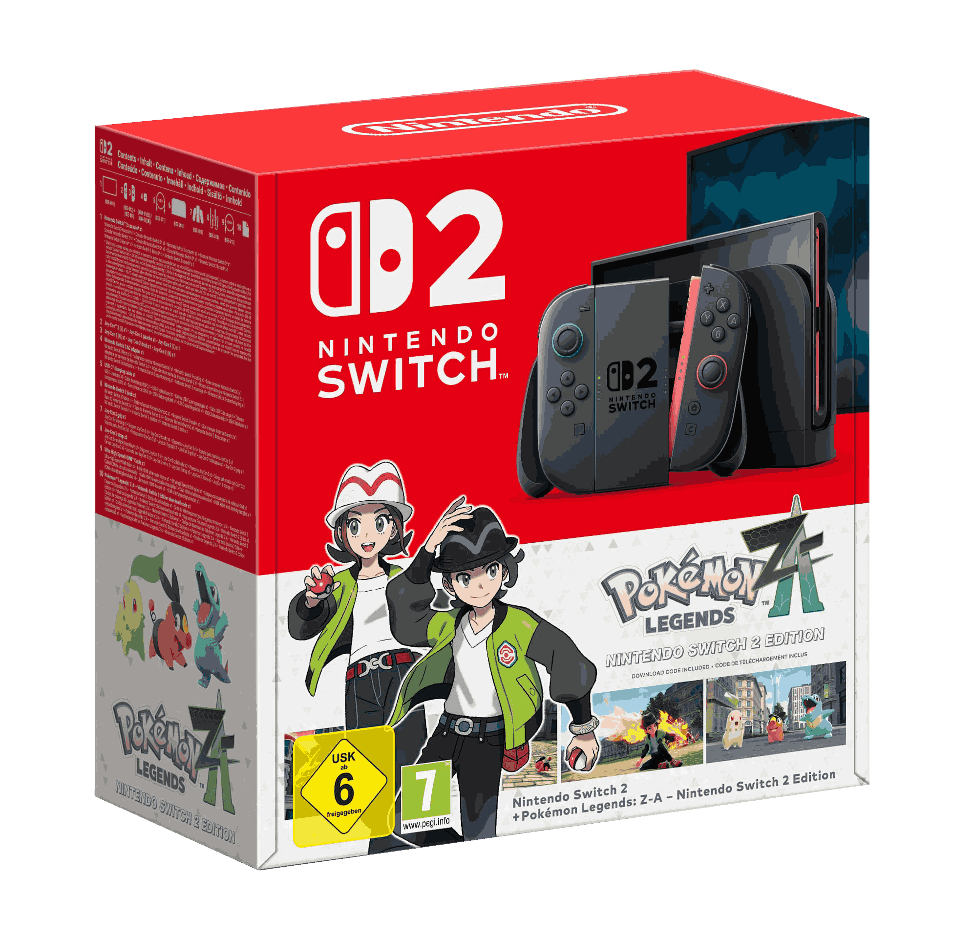1x Consola Nintendo Switch 2, 2x Joy-Cons 2, 1x Juego Pokémon Legends Z-A (edición digital), 1x Cable de carga, 1x Manuales