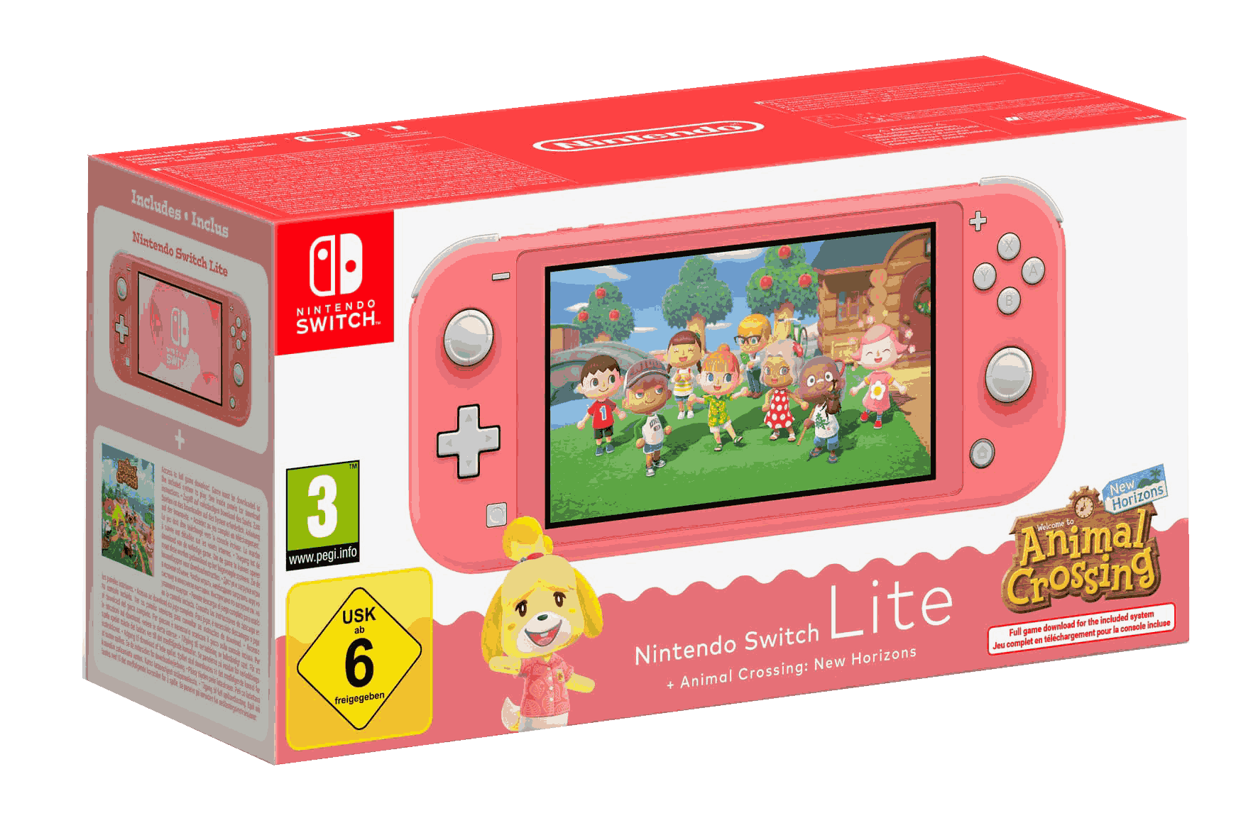 Animal Crossing: New Horizons (*El juego no está preinstalado ni incluye código de descarga. El juego se descarga vinculado al número de serie de la consola, por tanto, solo se puede instalar en ella.)
