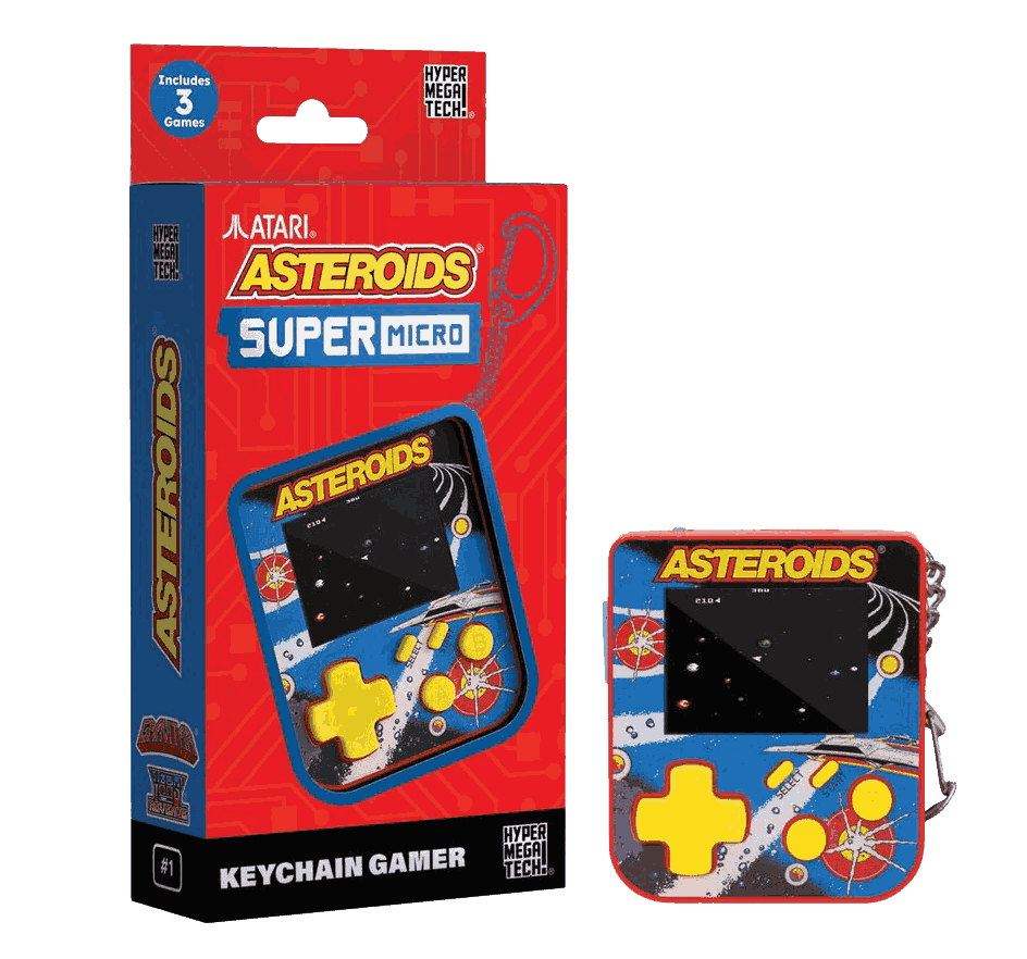 Consola retro portátil - Atari Super Micro Asteroids, Pantalla RB 2", 3 juegos: BurgerTime, Gravitar y Yars Revenge