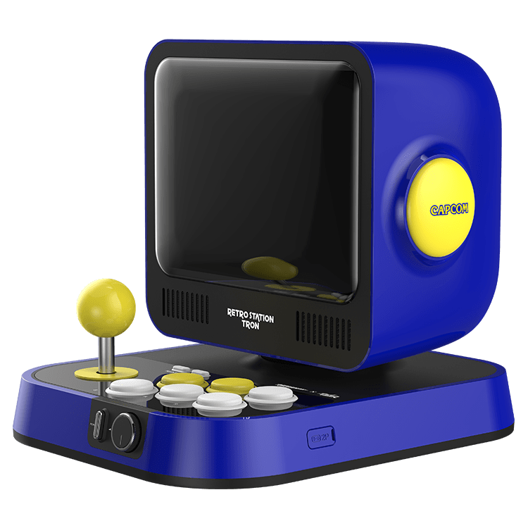 Consola retro - My Arcade Arcade RetroStation, Mega Man y Street Fighter, Pantalla LCD 8", Altavoz doble Super Bass, Azul y amarillo