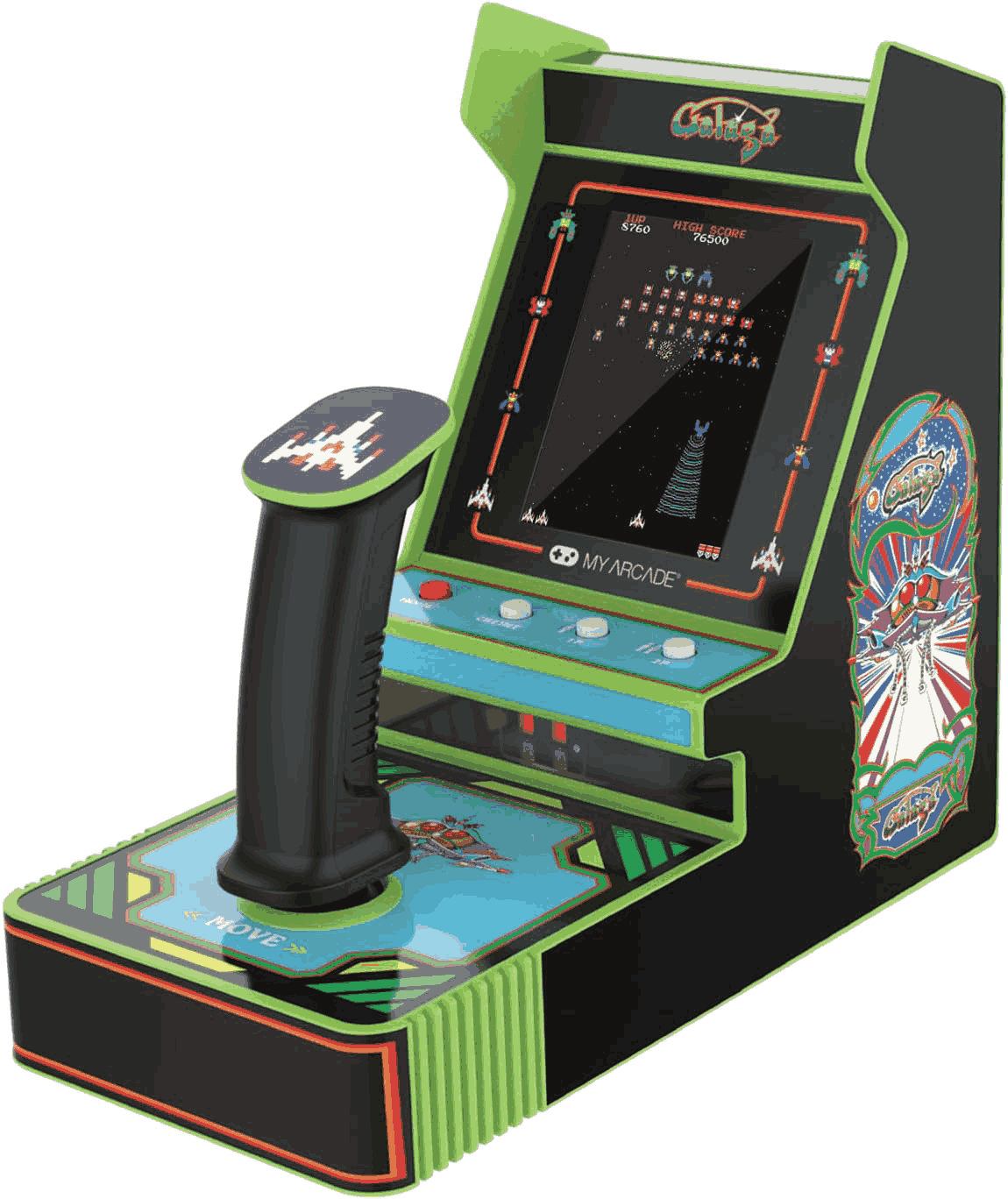 Consola retro portátil - MyArcade Joystick Player Galaga, 3.2", 2 juegos: Galaga y Galaxian, Con joystick, Negro y Verde