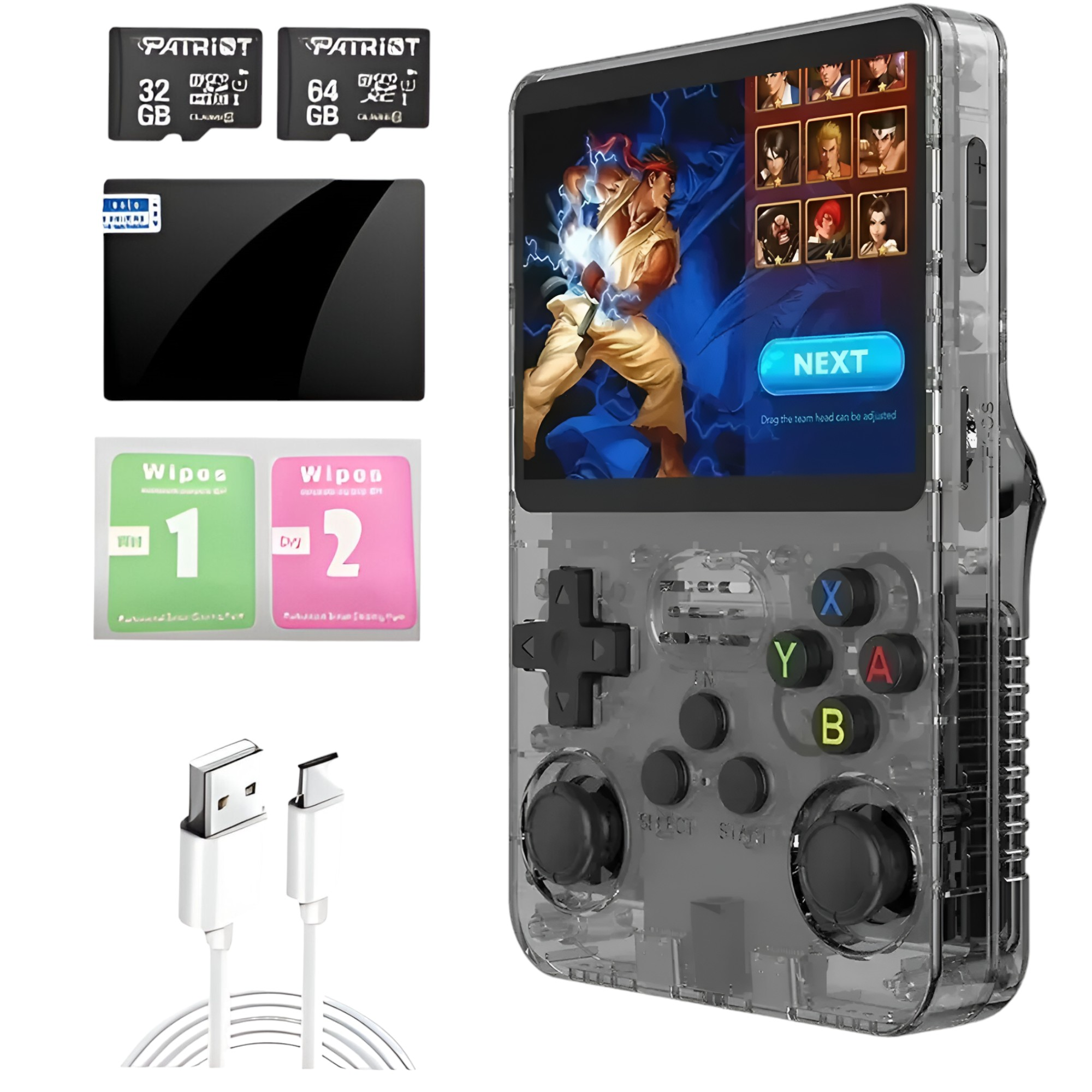 1x Consola retro portátil con joystick (*Pilas AA y cable USB-C no incluidos)