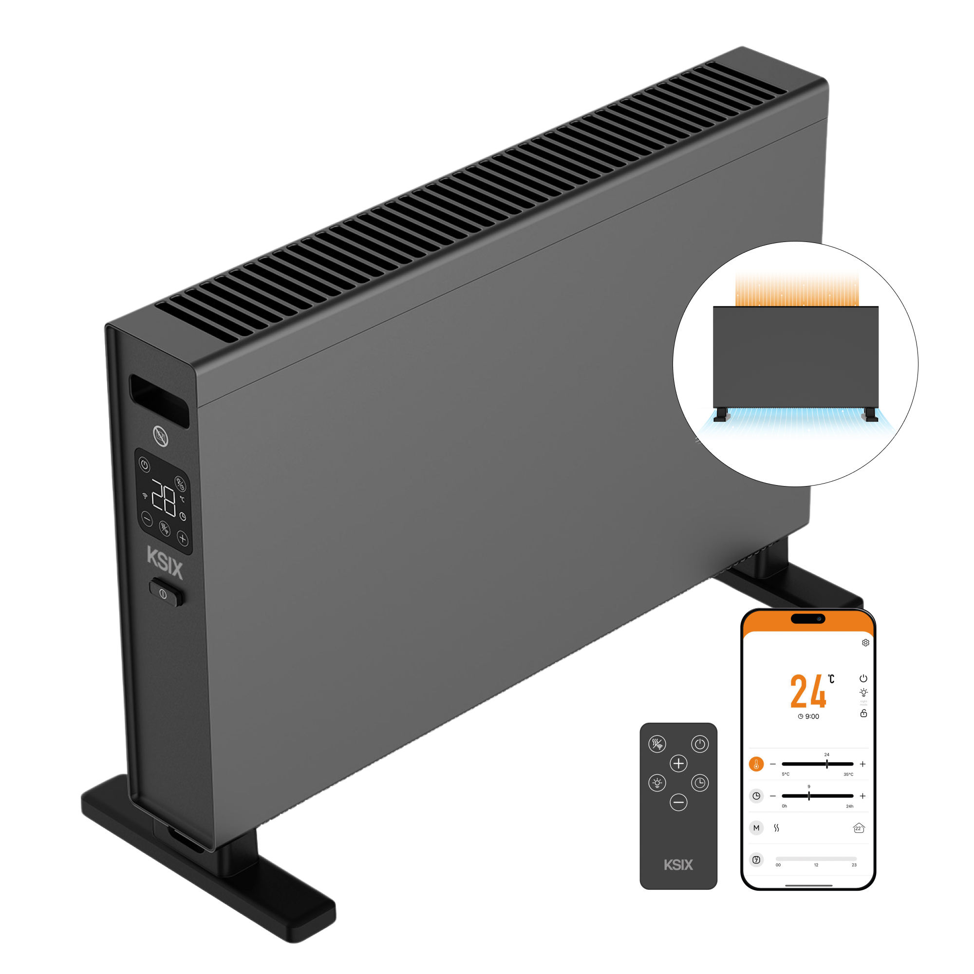 Convector - KSIX Blaze, 2000 W, 2 niveles de calor, Negro