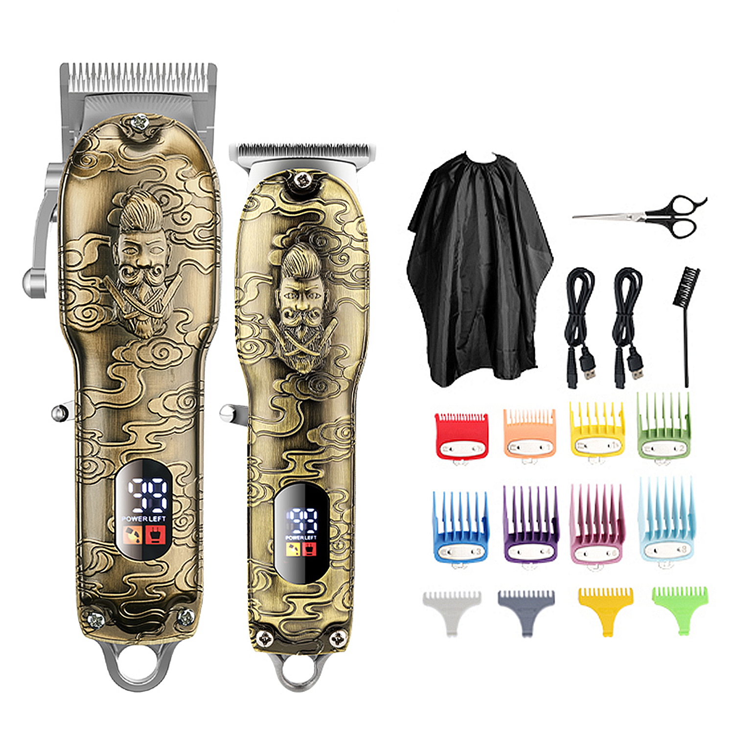 1x Cortadoras de pelo y maquinillas,1x Aceite incluido,1x Tapa protectora,1x Cepillo de limpieza,1x Funda para almacenamiento,1x Peine,1x Tijeras