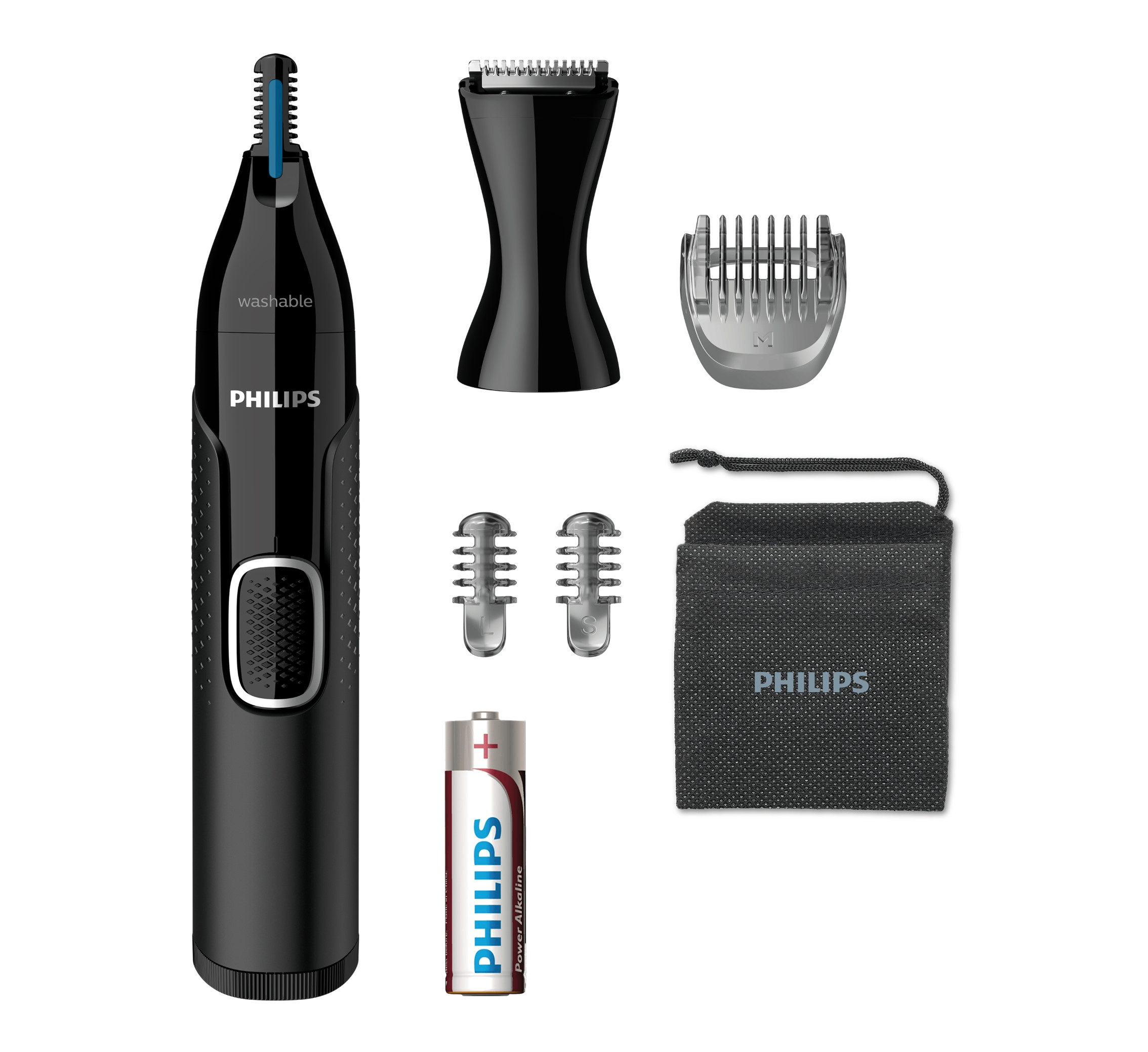 Cortapelos nariz - Philips NT5650/16 , Recortador de precisión para nariz, orejas y cejas, 3 peines-guía, Funda de viaje, Negro