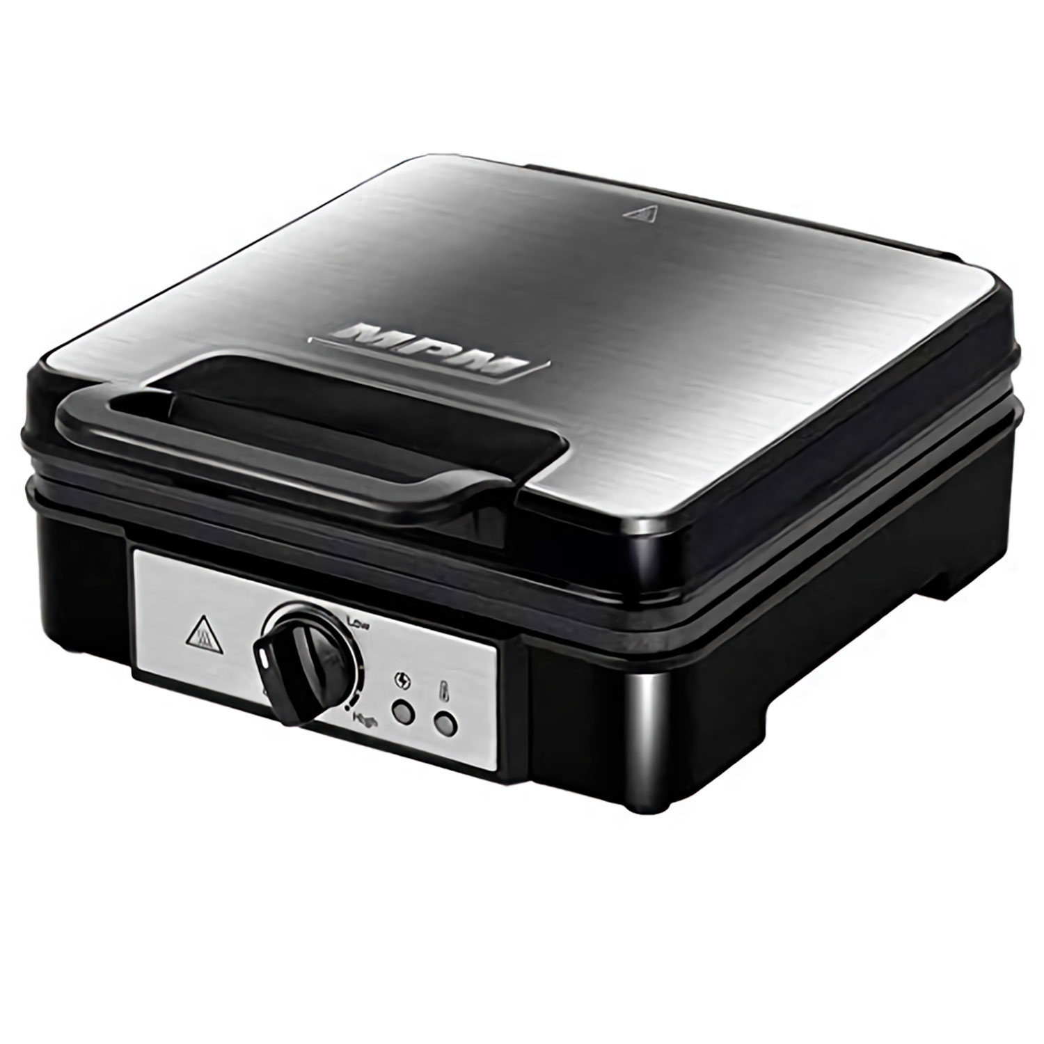 Gofrera - MPM MGO-36M, Gofrera Eléctrica Profesional, 4 Gofres Belgas Gruesos, Antiadherente, Regulador Temperatur, 1200 W, Negro/Plata