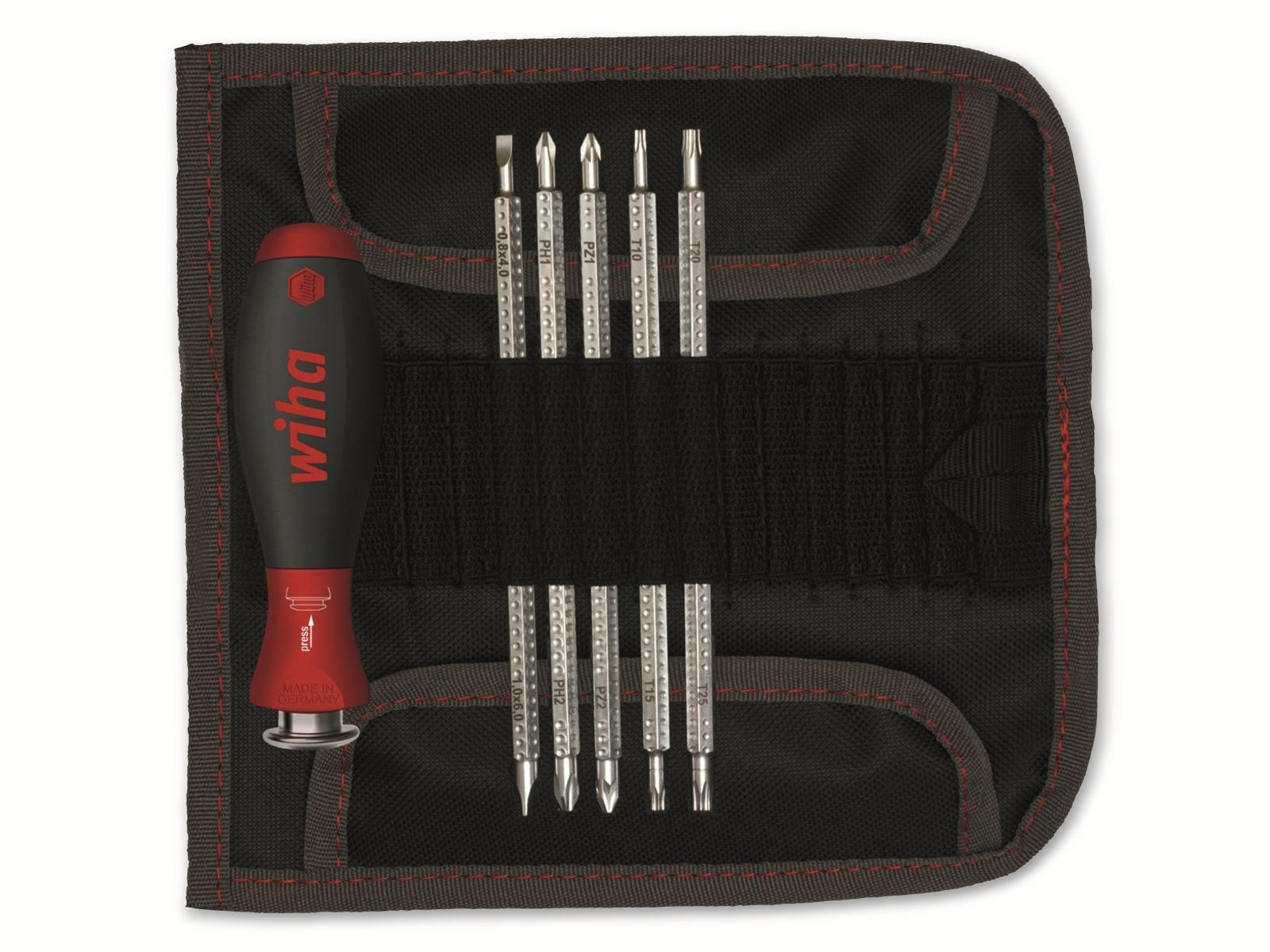 1x Destornilladores manuales,1x Funda de transporte,Número de bits:6,Desatornillador/puntas incluidas:Phillips;Pozidriv;Ranura;Torx,Tipo de destornillador:Destornillador estándar