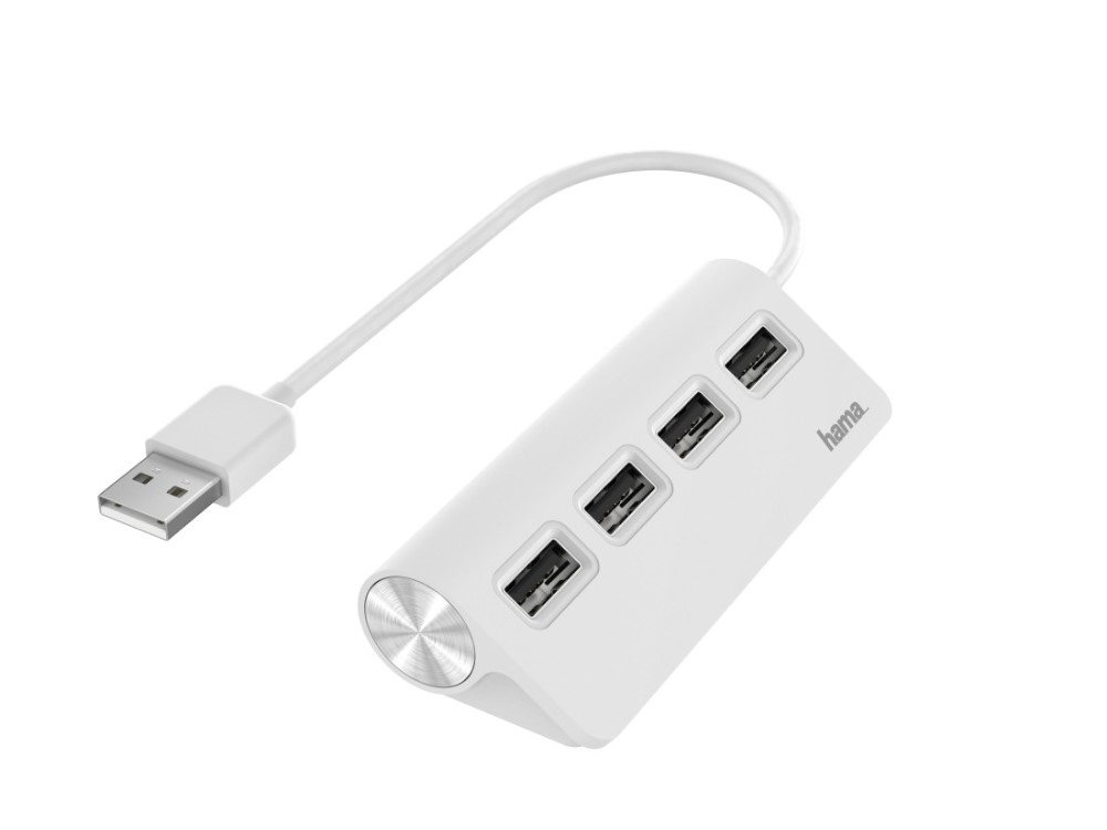 Hub - Hama 00200120, USB 2.0, Para portátiles, Plug & Play, 4x Puertos USB, Blanco