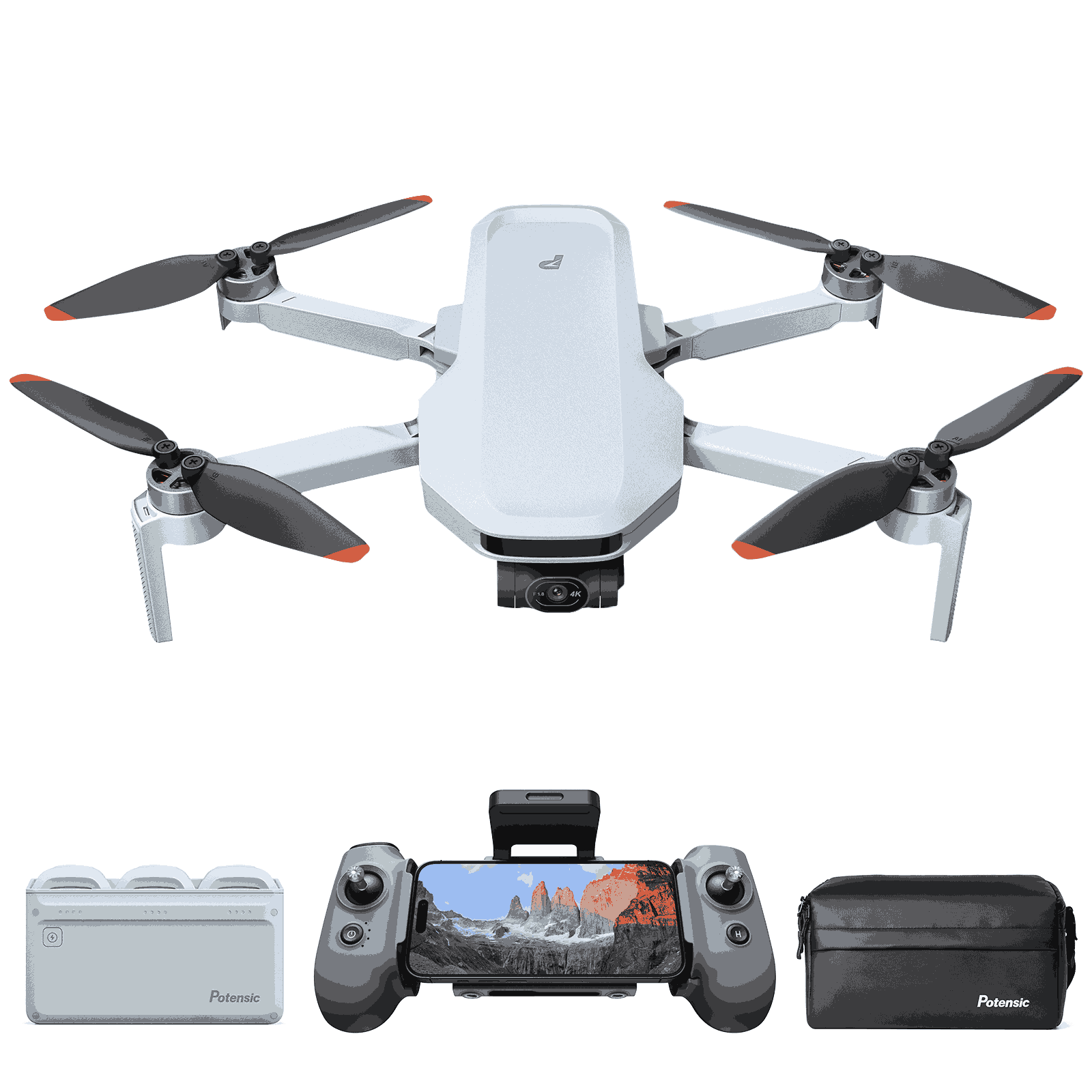 1× Dron Antigravity A1, 1× Gafas Antigravity Vision, 1× Controlador de movimiento Antigravity Grip, 3× Batería de vuelo, 1× Hub de carga, 1× Correa para el mando, 1× Batería para las gafas Vision, 1× Cinta para la cabeza, 1× Acolchado de espuma, 1× Tapas para lentes, 1× Cordón para batería, 1× Cable de alimentación USB‑C a DC, 1× Cable de carga USB‑C, 8× Hélices de repuesto (juego completo), 1× Destornillador, 1× Estuche de transporte, 1× Bolsa bandolera, 2× Montura para lentes correctivas, 1× Paño para lentes, 1x Manual