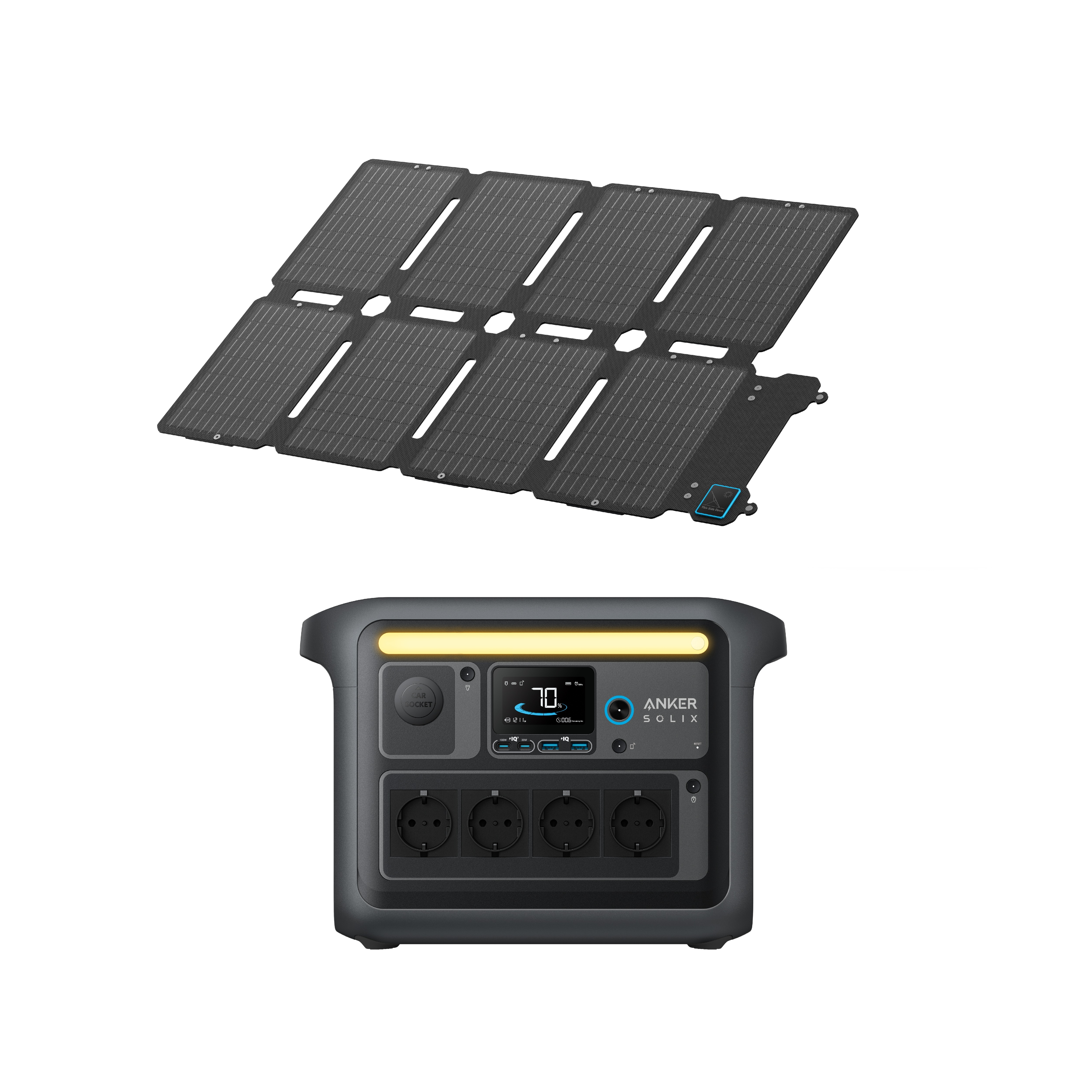 1 panel solar de 60 W; 1 DC5521 a XT60 (1,2 m); 1 manual de instrucciones; 2 Mosquetón;
