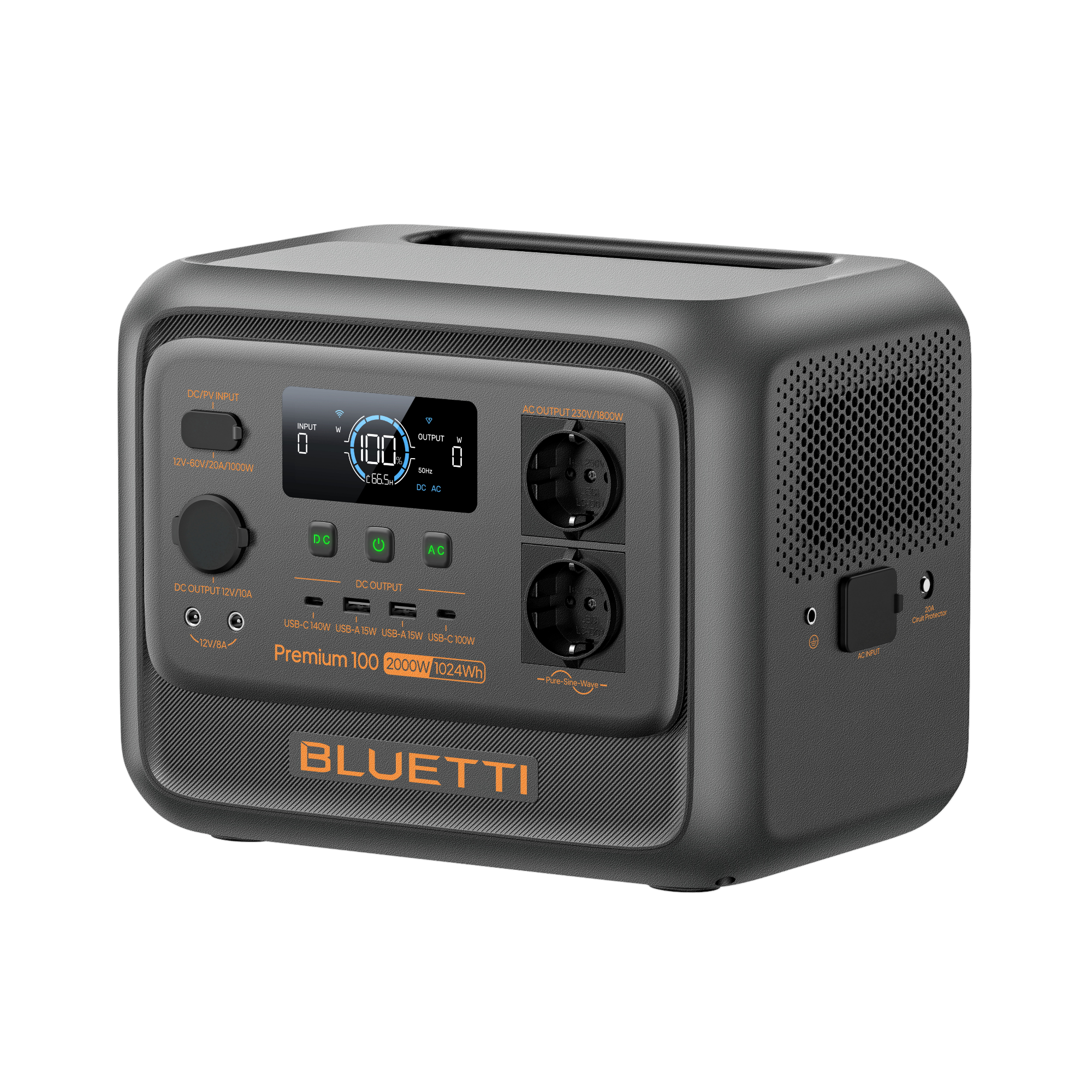 DC5521 (máx. 60 W)* Con conector DC5521 a XT60 (1,2 m), USB-C (máx. 30 W), USB-A (máx. 18 W)
