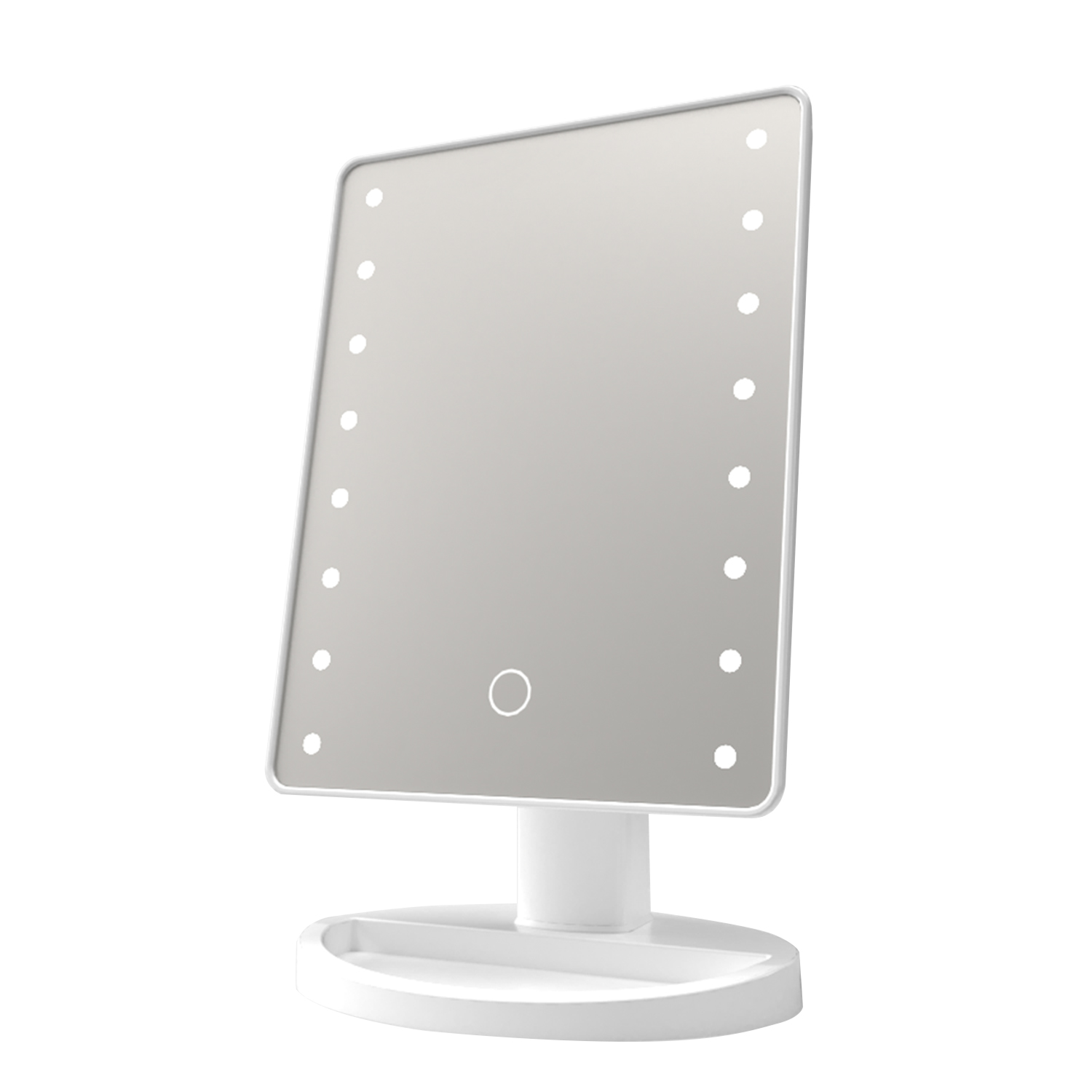 Espejo de maquillaje con luz LED Klack, espejo de tocador con rotación de 360°, plegable, con Base de almacenamiento con 3 compartimentos y Aumento