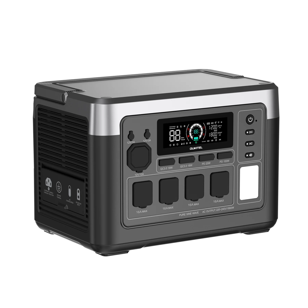 Entrada PV: 12 - 50V, 500W; Salida CA: 220 - 240V/1800W (UE), 50/60Hz, onda sinusoidal pura; USB QC3.0: (5 - 12V/18W)*2; Tipo-C: (5 - 12V/20W)*1; Tipo-C: (5 - 20V/5.0A)*1, 100W máx. con PD3.0; DC5521: (12V/3A)*2; Salida de cargador de coche: 12V/10A; UPS: 220 - 240VAC/MÁX.10A (UE)