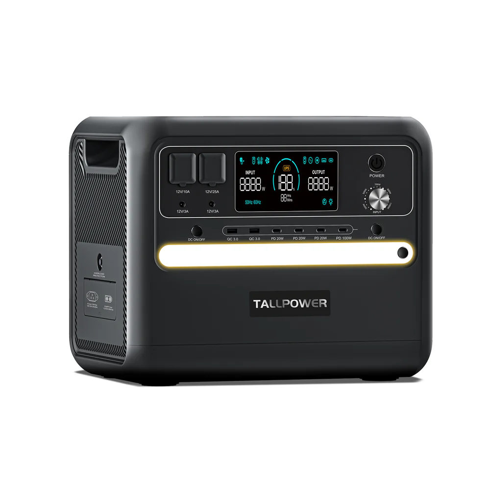 Capacidad: 2160Wh; Tipo de Celda: LiFePo4; Carga CA: Entrada de red CA, 1100W máx.; Entrada MPPT: 11.5-50V/20A/500W máx.; Salida CA: 50/60Hz (conmutable), nominal 2400W, onda sinusoidal pura con protección contra sobrecarga y cortocircuito; USB QC3.0: 18W*2; Tipo-C: PD 20W*3; Tipo-C: PD 100W*1; DC 5521: 12V/3A*2; Salida XT60: 12V/25A; Salida de Carga del Coche: 12V/10A; Corriente de Apagado: <lt/>500uA; Temperatura de Trabajo: -10 - 40 Celsius; Humedad Ambiente: ≤90%HR; Ciclos: <gt/>3500 Veces.