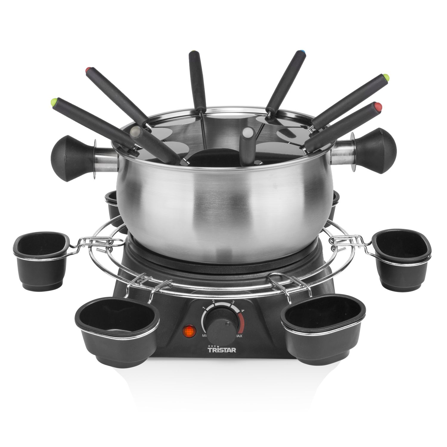 Fondue - Russell Hobbs Fiesta, 2 L, Con 6 tenedores, Indicadores encendido, Inox