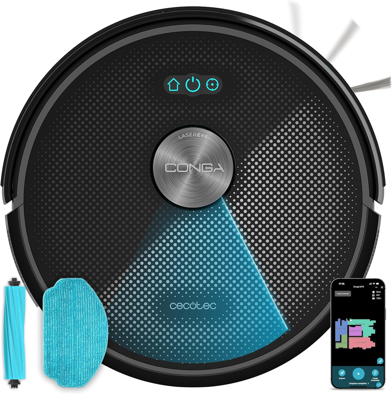 REACONDICIONADO Seminuevo Muy bueno Robot aspirador - Cecotec Conga 3890 Titanium, 2300 Pa, 10 Modos de limpieza, Wi-Fi, 150 min, 64 dB, Negro