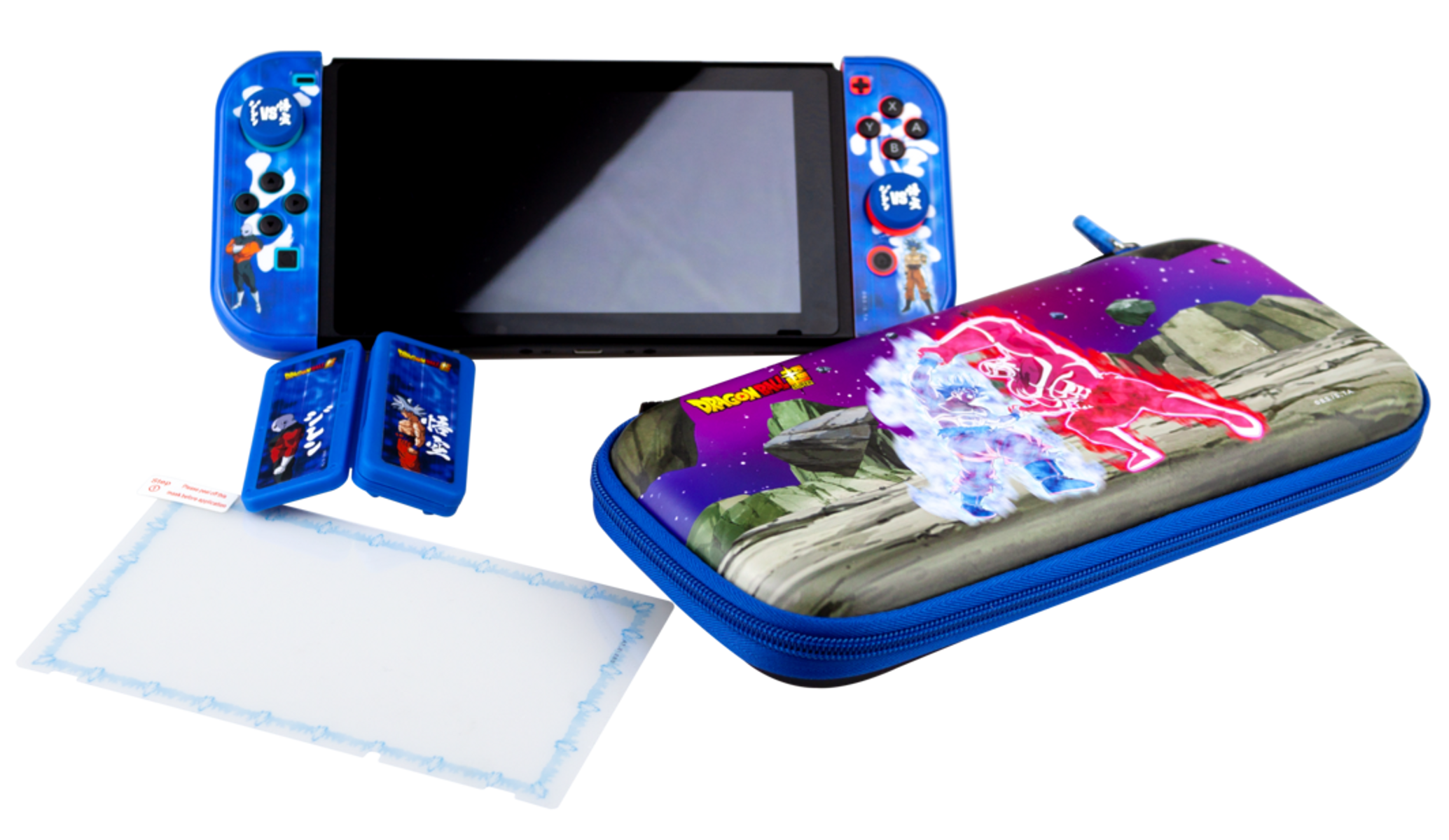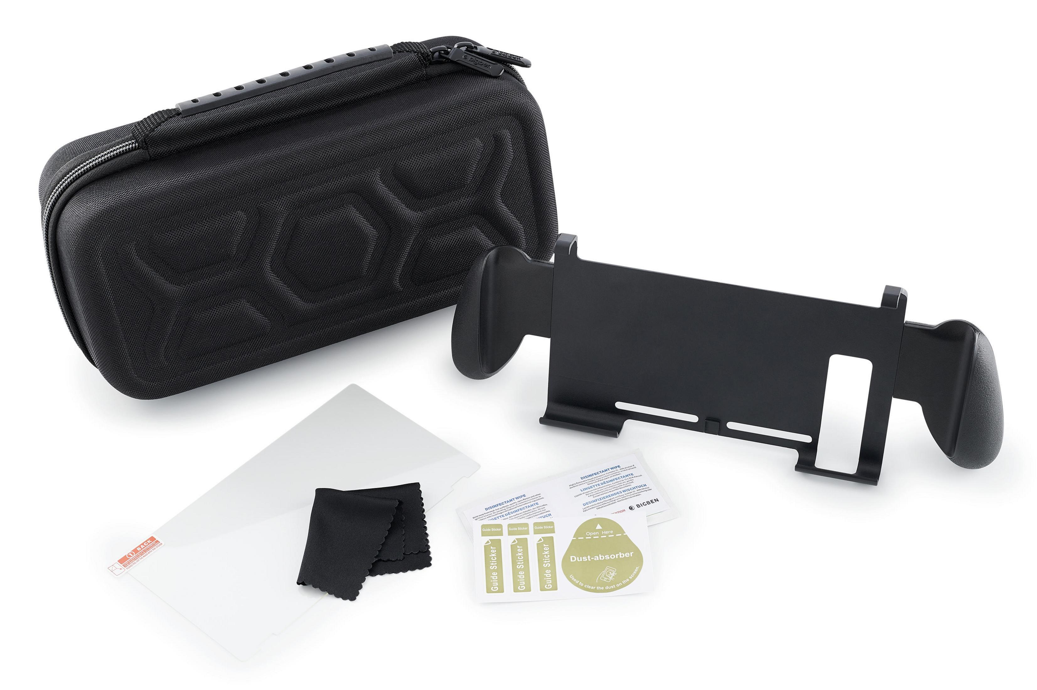 Grips para mejor agarre, protector rígido para los Joy Cons, caja de juegos protectora para 4 juegos, protector de pantalla antirayadas y bolsa de transporte fabricada de material resistente