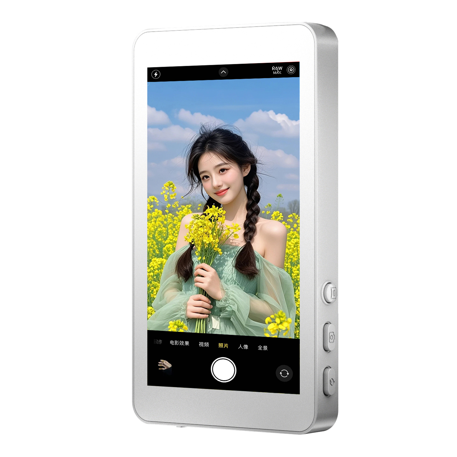 1x Pantalla selfie, 1x Lanyard para muñeca, 1x Cable de carga USB Tipo C, 1x Círculo magnético, 1x Manual de instrucciones.