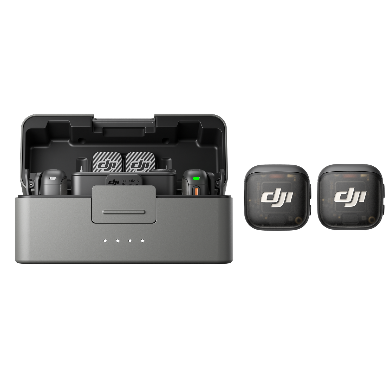 2x Transmisor DJI Mic 3, 1x Receptor DJI Mic 3, 1x Estuche de carga DJI Mic 3, 1x Adaptador de teléfono móvil (USB-C) DJI Mic 3, 1x Cable de datos USB-C a USB-C, 1x Cable adaptador de audio con bloqueo DJI Mic 3 (3.5 mm TRS a TRS), 2x Antiviento DJI Mic 3 (negro/gris), 2x Antiviento DJI Mic 3 (negro), 2x Imán DJI Mic 3, 2x Clip Magnético DJI Mic 3, 1x Funda de transporte DJI Mic 3