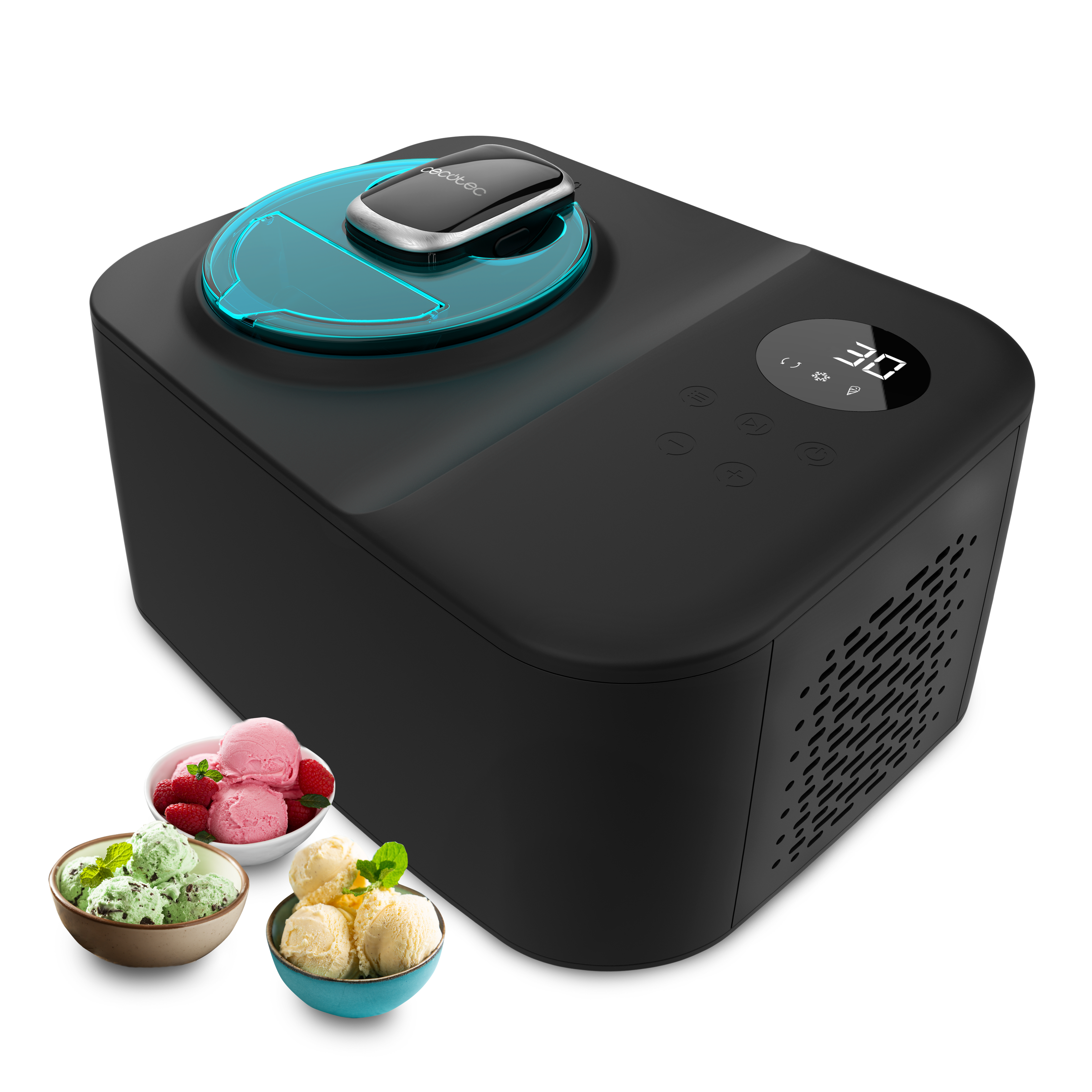 Heladera - Cecotec Gelacy 1200 Touch, Compresor, 110 W, 1.2 l, Control táctil, Cuenco y motor extraíble, Ventana, Incluye cuchilla de mezcla, Black