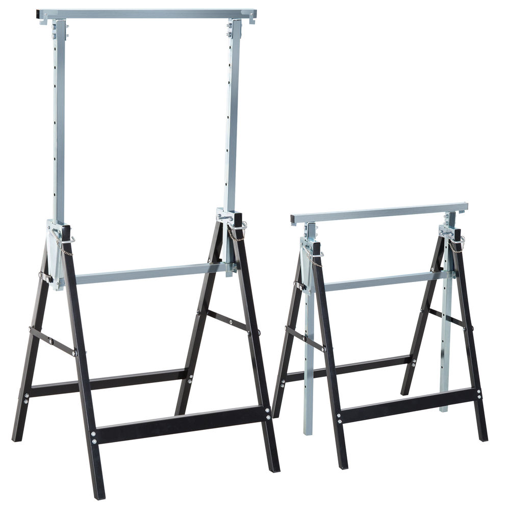 HOMCOM Set de 2 Caballetes Telescópicos Plegables con Altura Ajustable Caballetes de Sierra de Acero para Mesa y Trabajo de Bricolaje Carga 200 kg 68x58x80-130 cm Negro