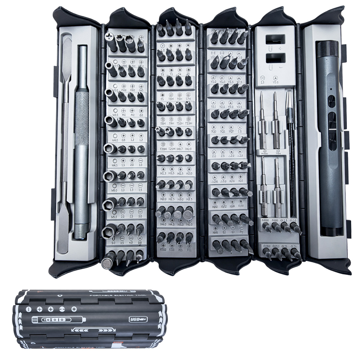 Conjunto de Herramientas de Reparación con Destornillador Eléctrico Inalámbrico USB Tipo-C - 124 en 1