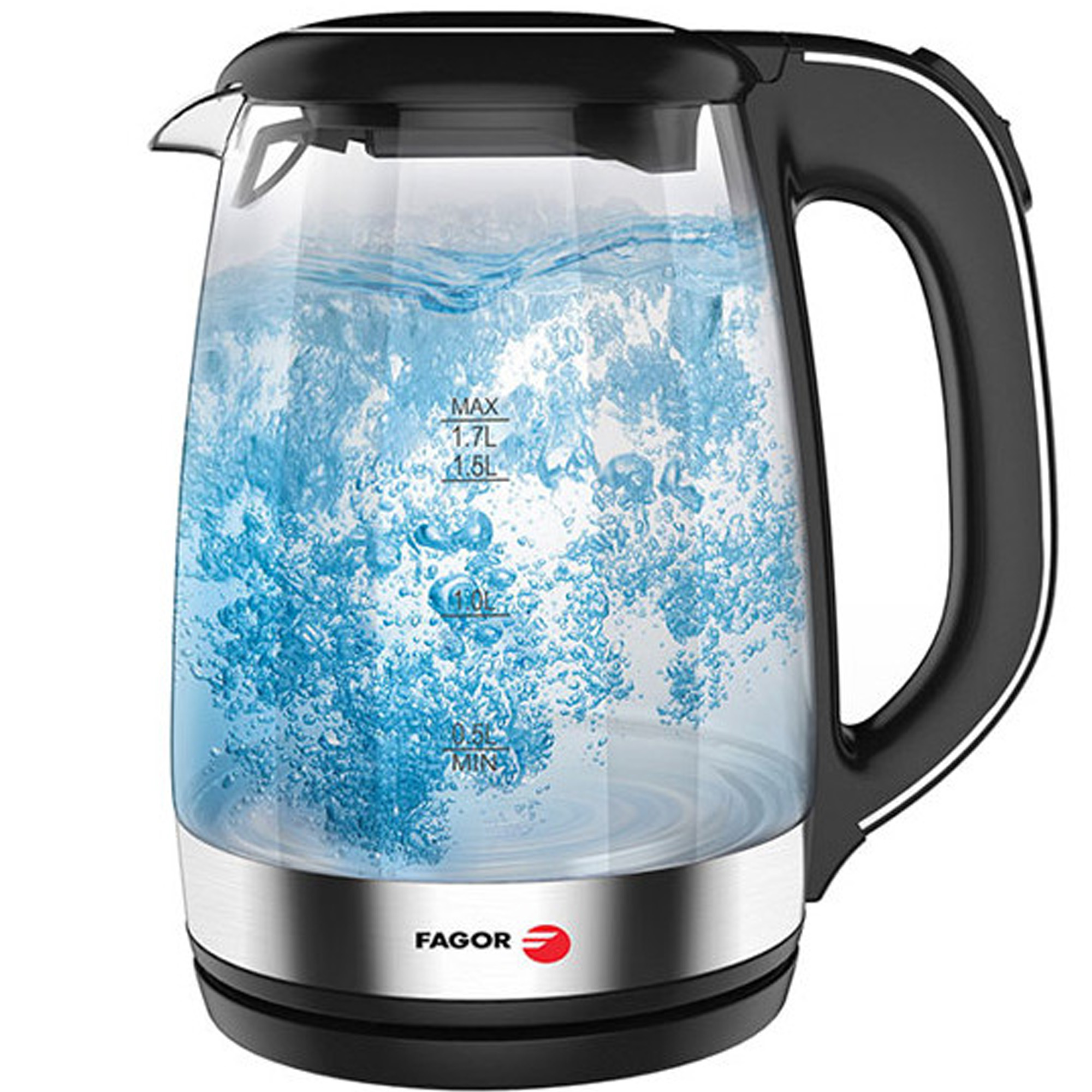Hervidor agua - FAGOR FG022, 2000 W, 1.7 l, Negro