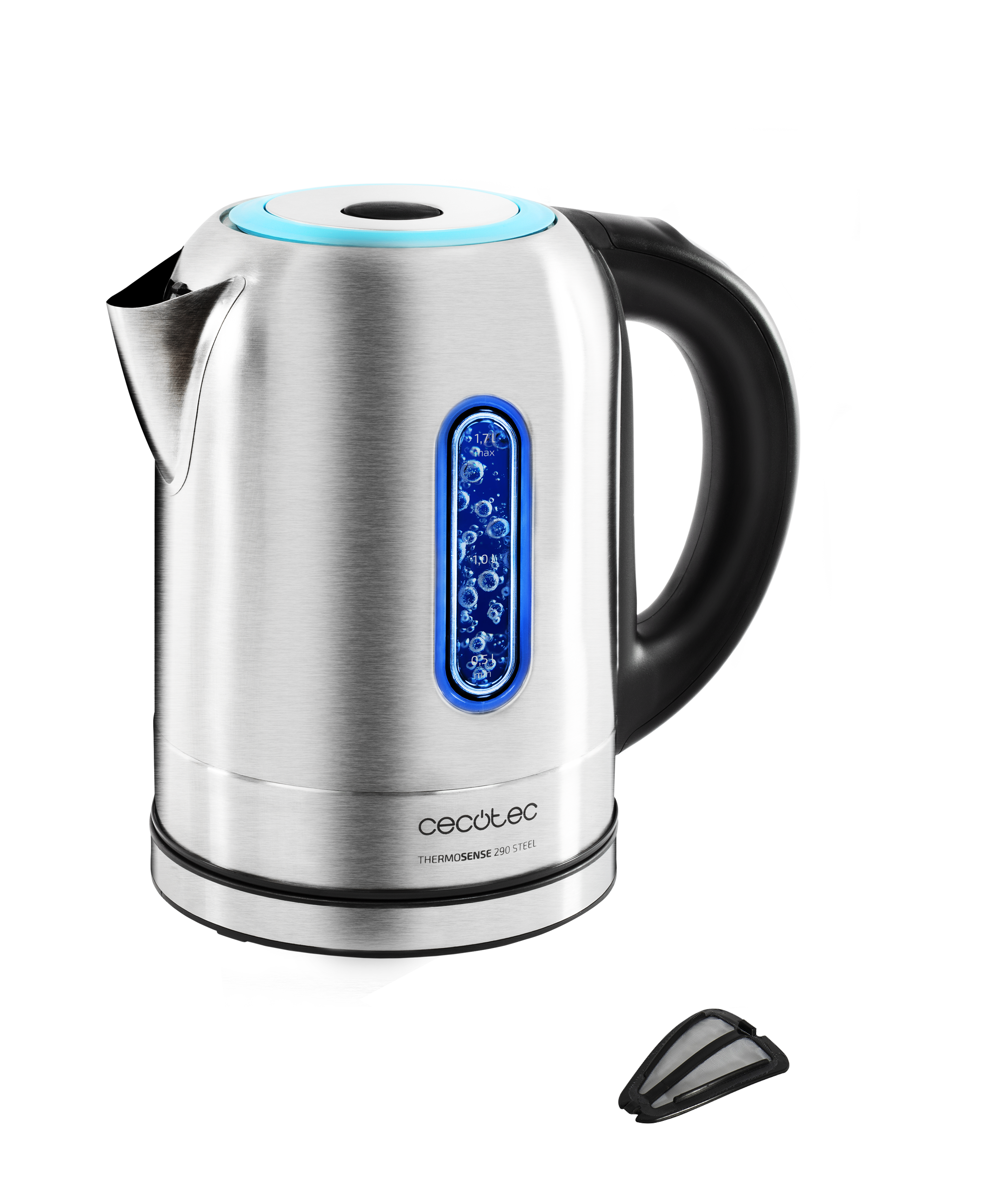 Hervidor de agua - Cecotec ThermoSense 170, 1.7L, 2200W, Libre de BPA, Filtro antical