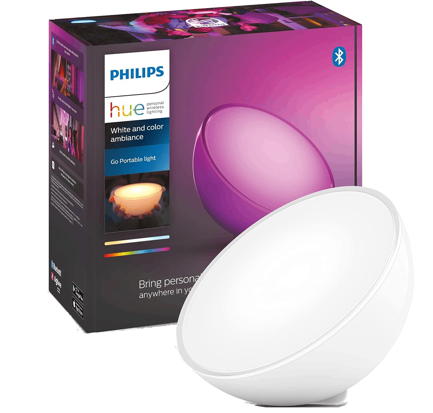 Lámpara LED Inteligente - Philips Hue Go, Lámpara Mesa Portátil, RGB, Con Bateria 6h, Zigbee+Bluetooth, Compatible Alexa/Google