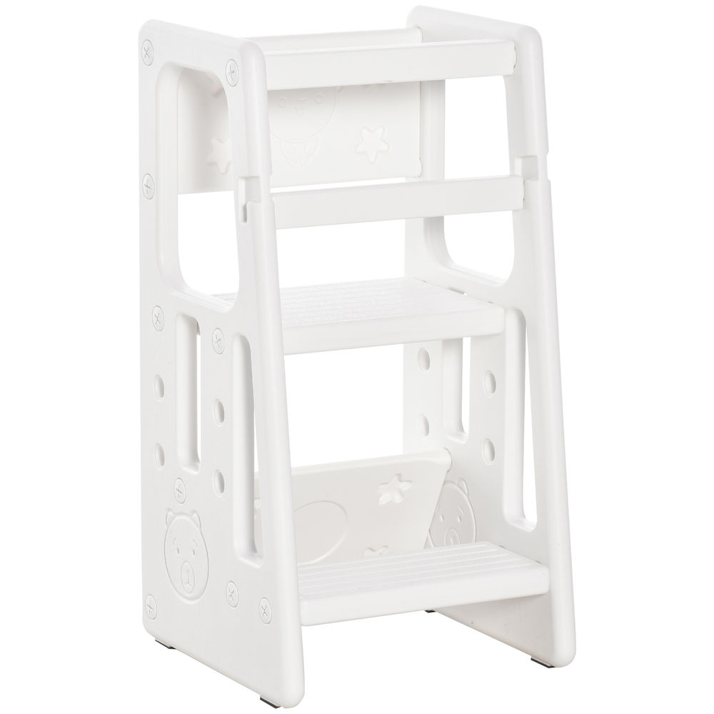HOMCOM Torre de Aprendizaje 2 en 1 Taburete de Aprendizaje para Niños de +3 Años Convertible en Escritorio con Pizarra y Barra de Seguridad 42x44x86 cm Blanco