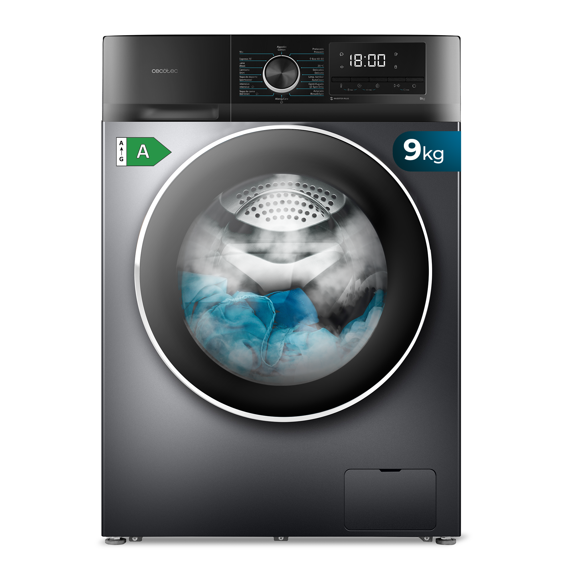 REACONDICIONADO Seminuevo Excelente Lavadora carga frontal - Cecotec Bolero DressCode 9500 Inverter Steel A, 9 kg, 1400 rpm, Motor inverter plus