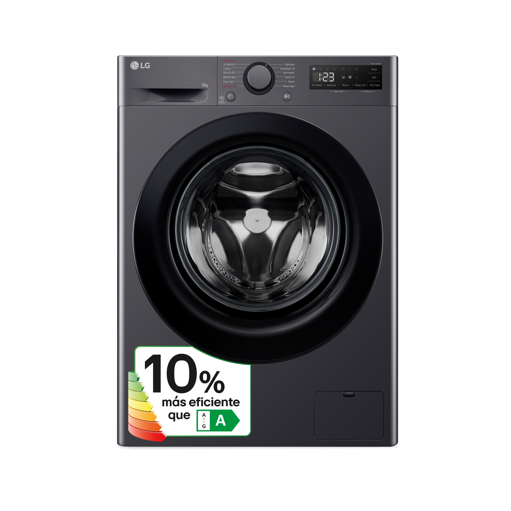 REACONDICIONADO Seminuevo Bueno Lavadora carga frontal - LG F4WR5009A6M, Serie 500, 9 kg, 1400 rpm, 11 Programas, AI Direct Drive™, Steam™, Inox