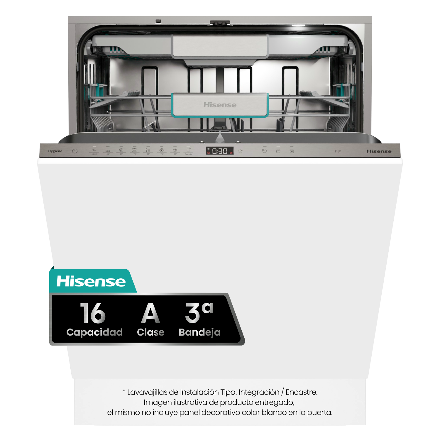 Lavavajillas integrable - Hisense HV673A65, 16 servicios, 7 programas, 59.8 cm, Tercera Bandejea, Wi Fi, Sin Panelar