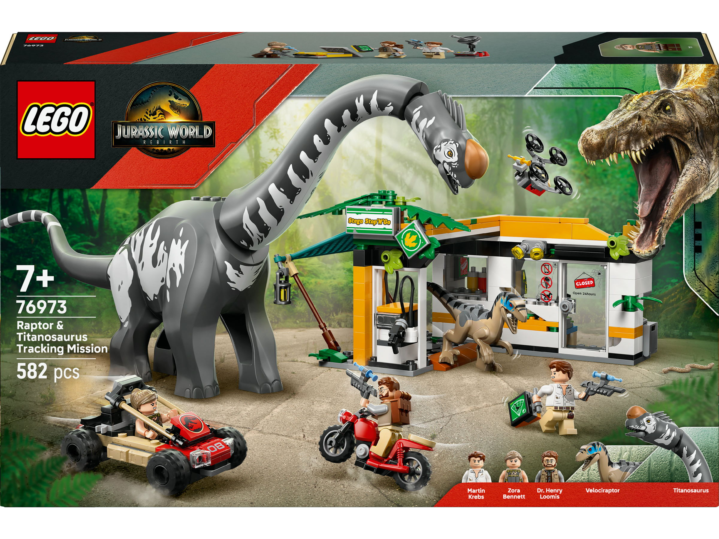 Juego de construcción - LEGO 76973 Jurassic World Misión de Seguimiento: Raptor y Titanosaurus Dinosaurios, 7 Años o Más, edad recomendada: 7 año(s), 582 piezas