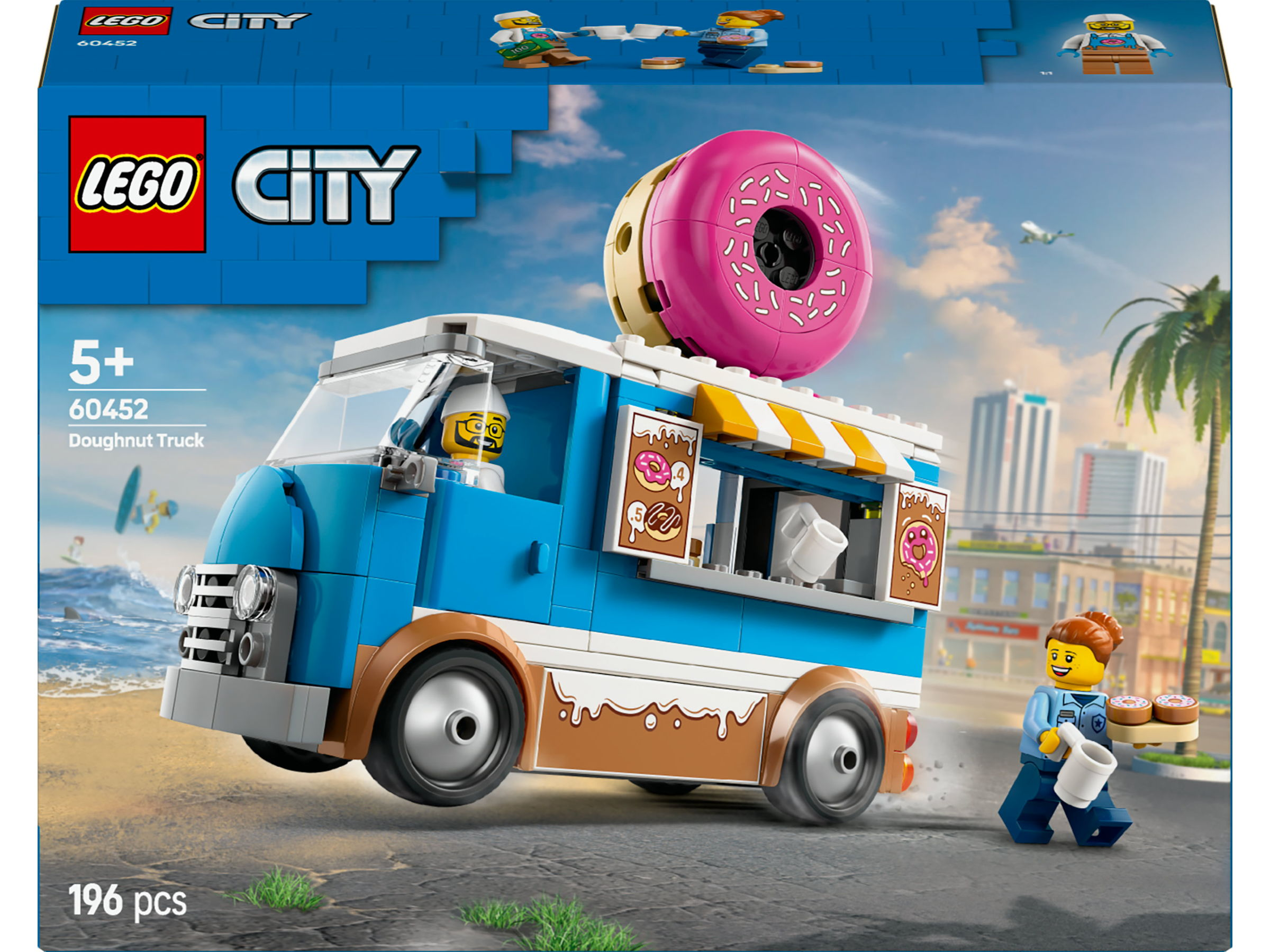 Juego de construcción - LEGO City Camión Dónuts: Food Truck con Minifiguras para el Juego de Rol Niños 60452, edad recomendada: 5 año(s), 196 piezas