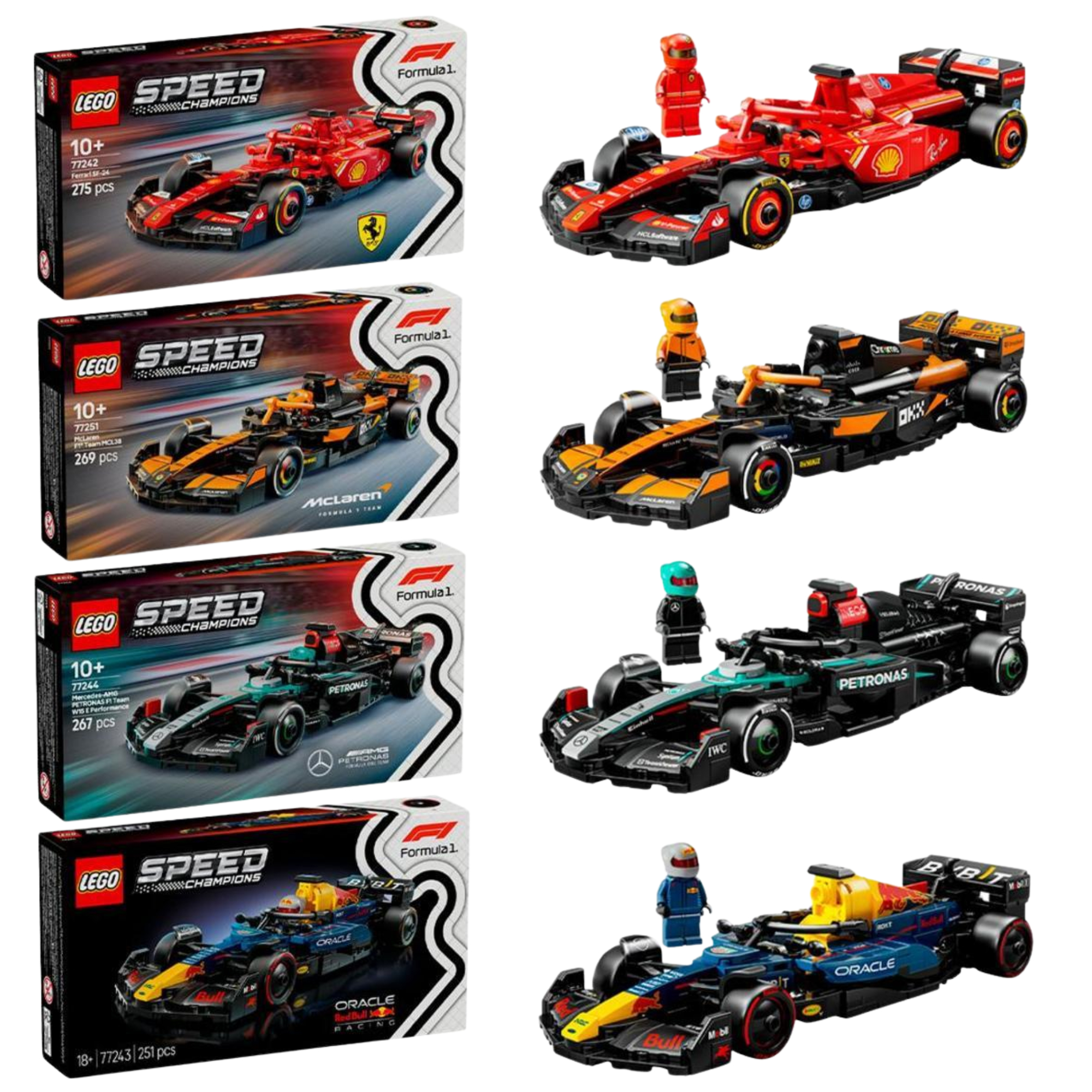Juego de construcción - LEGO Pack Speed Champions: Ferrari F1® + McLaren F1® + Oracle Red Bull Racing F1® + Mercedes-AMG F1®, edad recomendada: 10 año(s), 1062 piezas