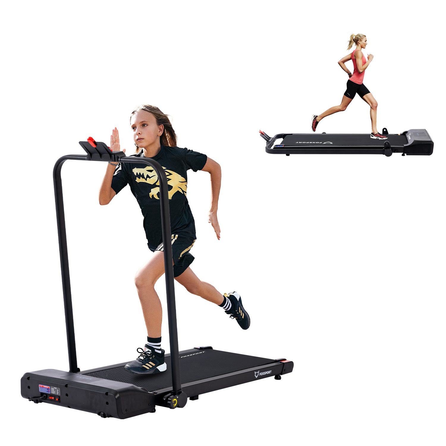 Cinta de correr - KIKIDO Z8C-403 Cinta de correr con reposabrazos para el hogar y la oficina, 100 kg, negro
