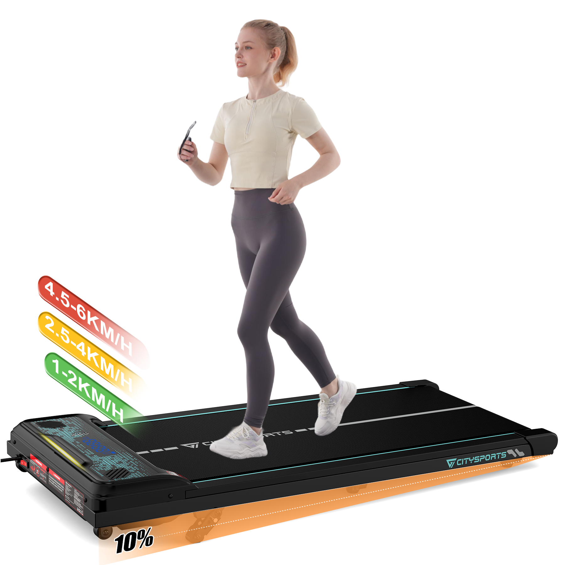 Cinta de Correr - CITYSPORTS Inclinación ajustable 1-6 km/h, Negro