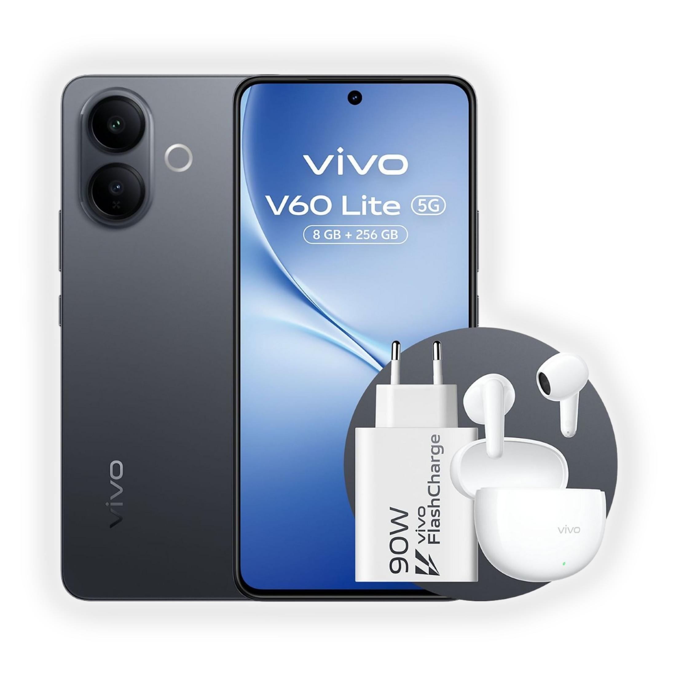 VIVO V60 Lite, Negro, Móvil Android, 256 GB, 8 GB RAM, 6,77 " AMOLED, Dimensity 7360-Turbo, 6500 mAh