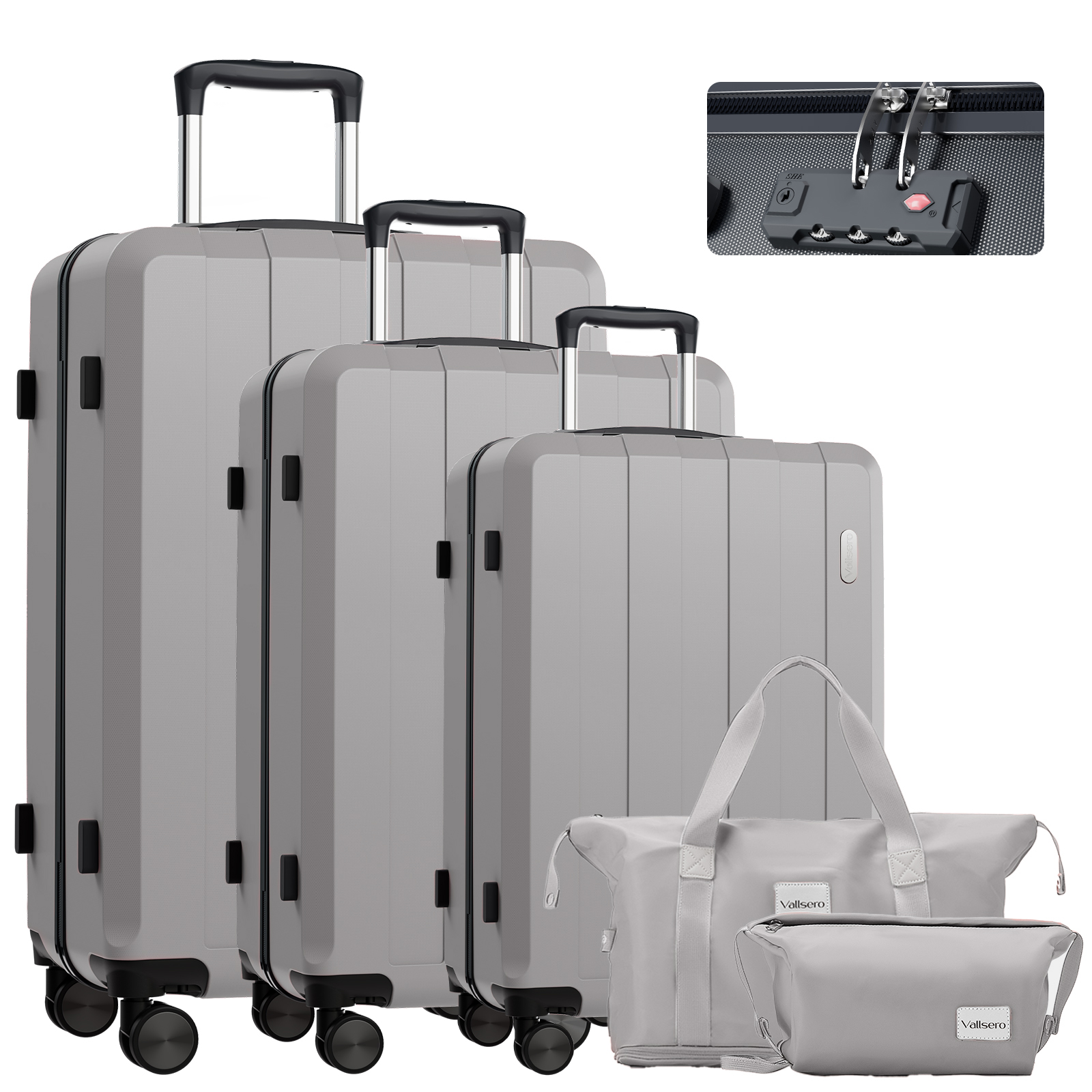 Maleta de Viaje - VALLSERO LG1, Trolley set estuche rígido, 5 piezas, 224 l, Plata