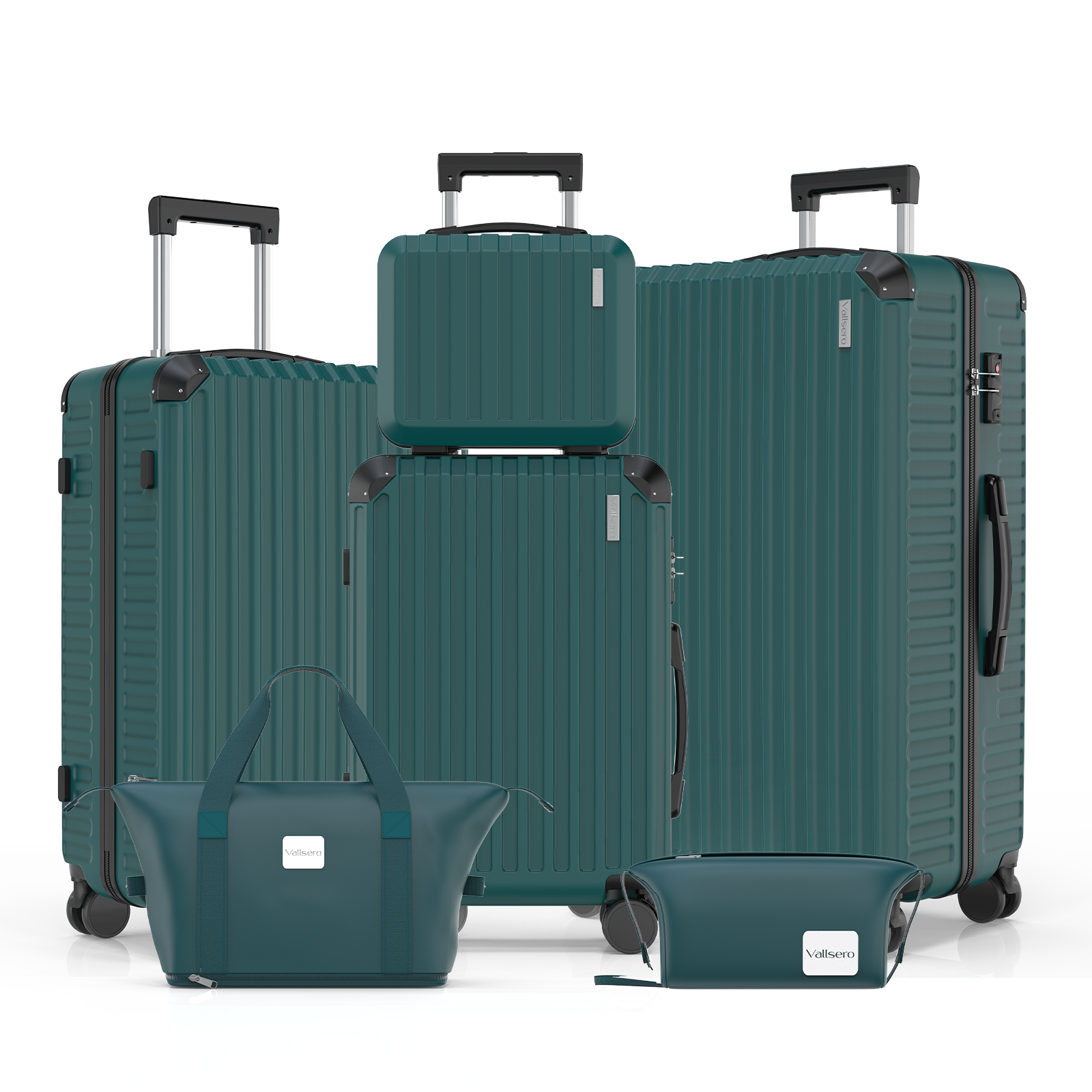 Maleta de Viaje - VALLSERO LG2, Trolley set estuche rígido, 6 piezas, 236 l, Azul Verde