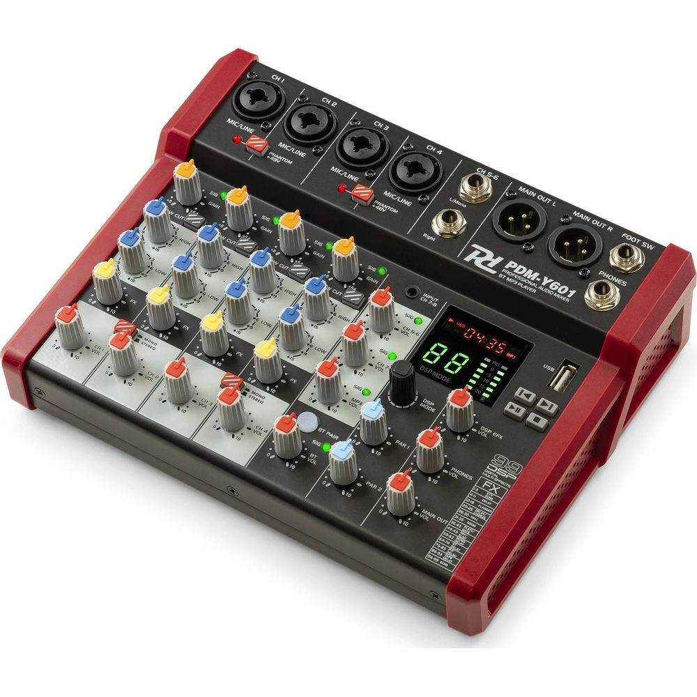 1 x Jack, 1 x RCA, 1 x USB, 1 x XLR (3 pines), 1 x Jack, 1 x NL-4, 1 x RCA, 1 x XLR (3-puntas)