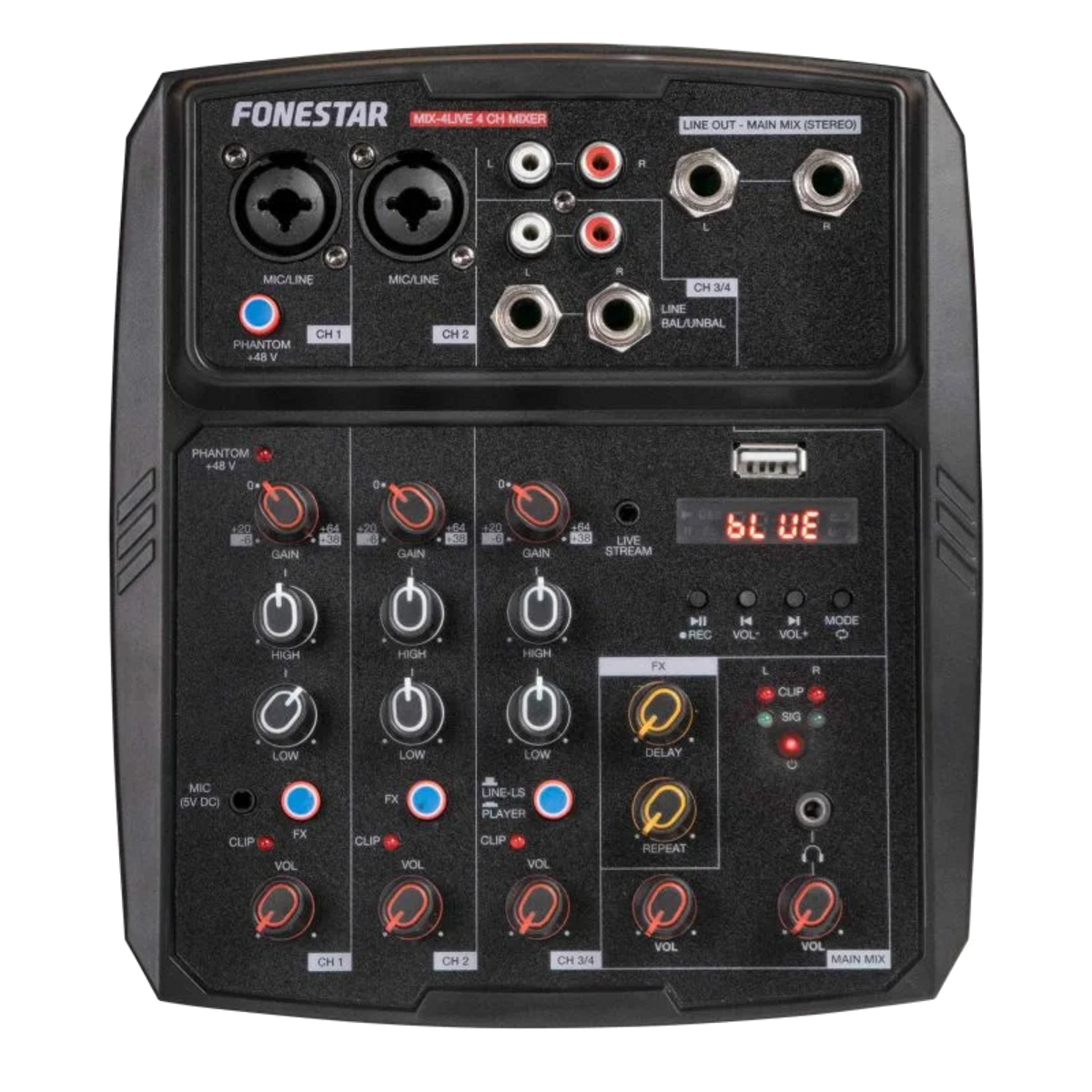 Mezcladora DJ - MIX-4LIVE FONESTAR, Negro