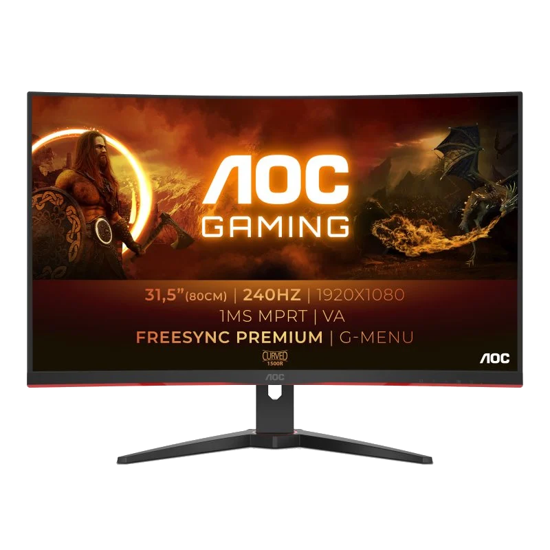Monitor gaming - AOC C32G2ZE, 31.5 ", Full-HD, 1 ms, 240 Hz, DisplayPort, HDMI, 178 °, Negro