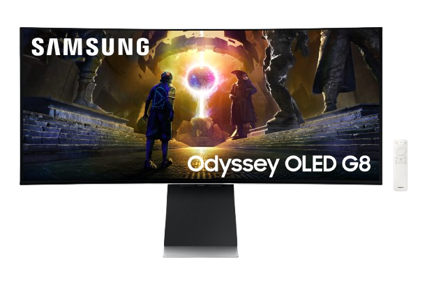 Monitor gaming - Samsung Odyssey G8 LS34DG850SUXEN, 34 " UWQHD, 175 Hz, 0.03 ms, OLED, Curvo, FreeSync Premium Pro, Altura ajustable, Plata
